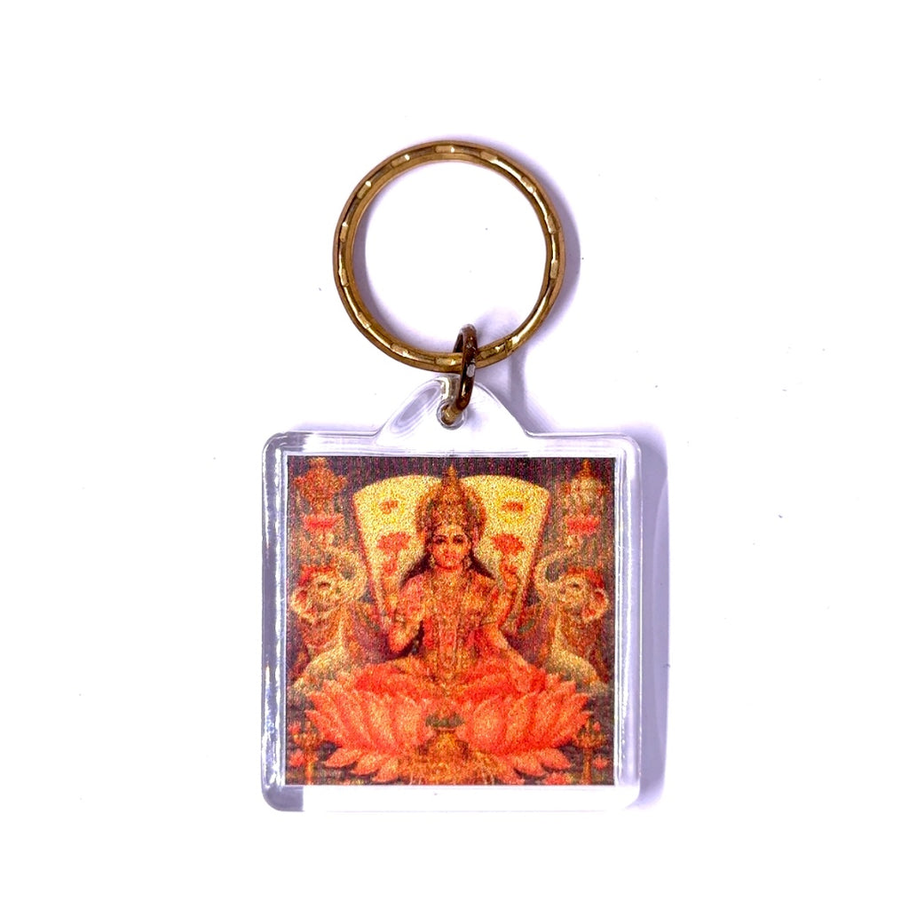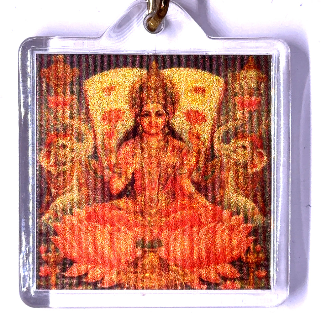 Goddess Lakshmi 24K Gold Foil Lakshmi Prosperity Laser Engraved Keychain Wealth Charm