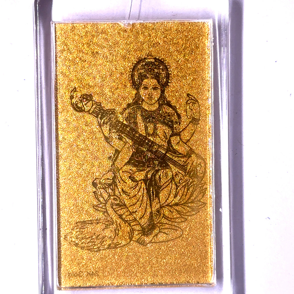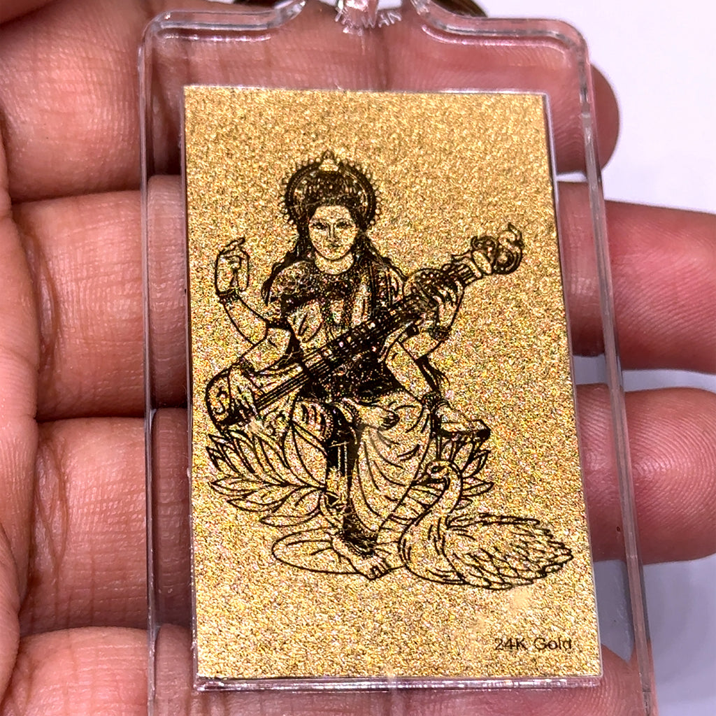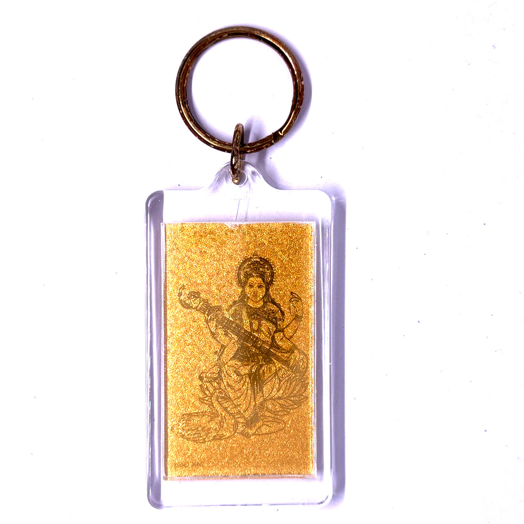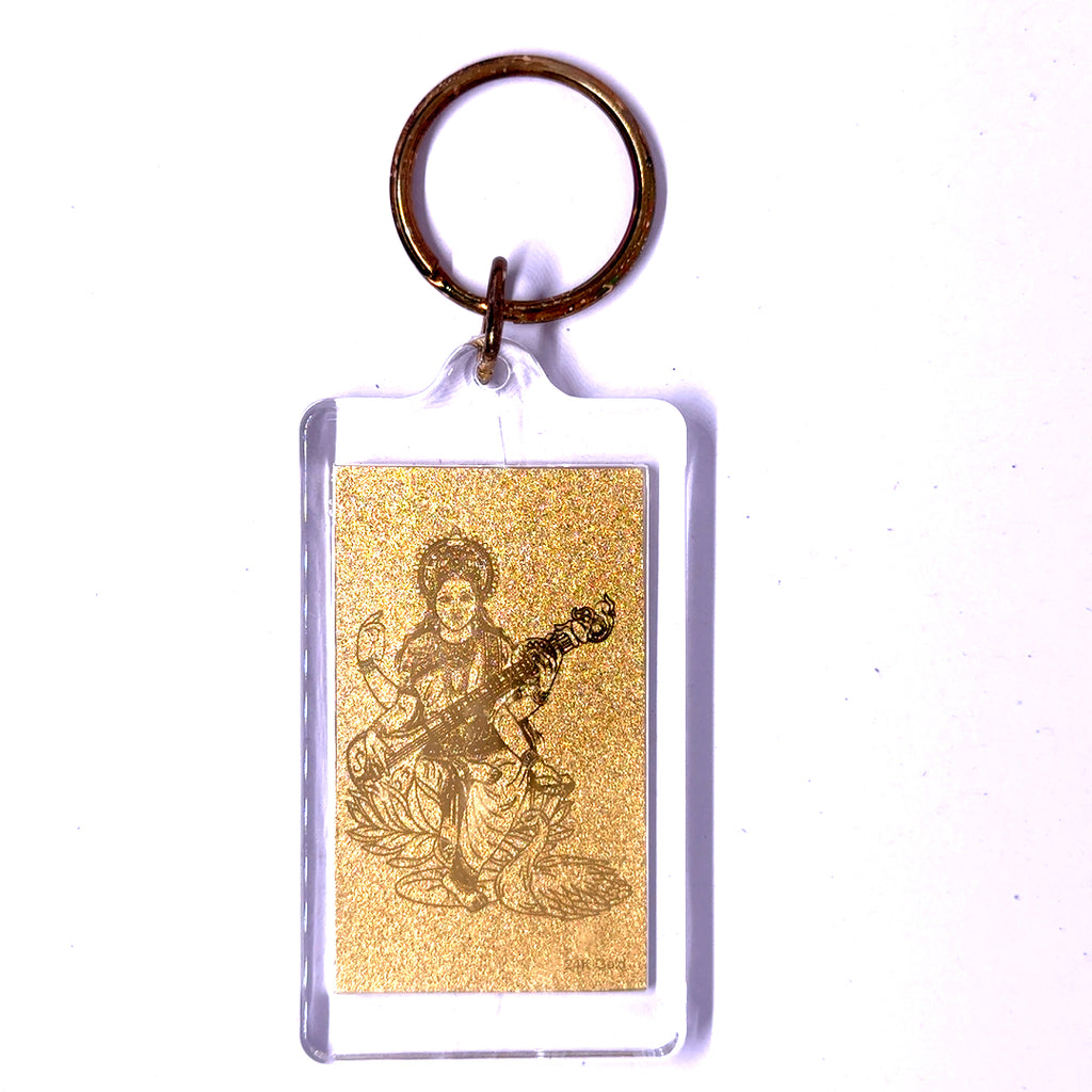 Goddess Saraswati Double-Sided 24K Gold Foil Keychain Engraved Wisdom & Spiritual Gift