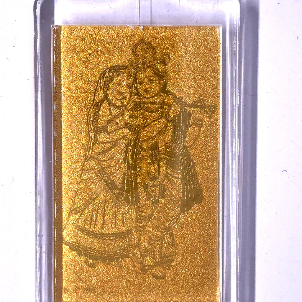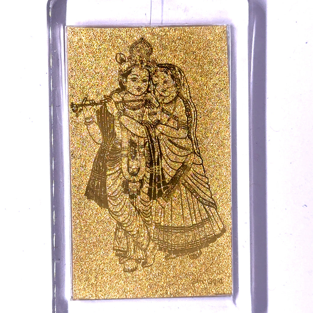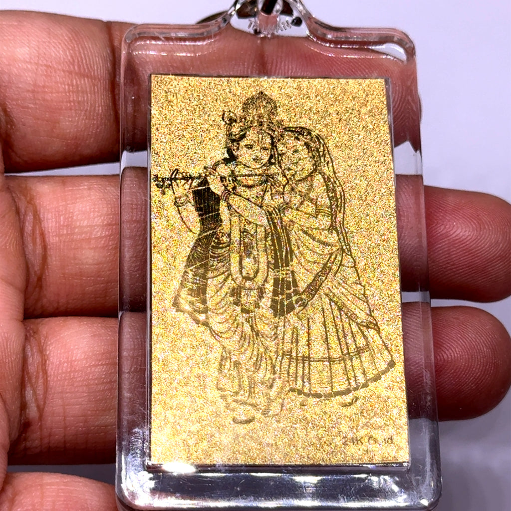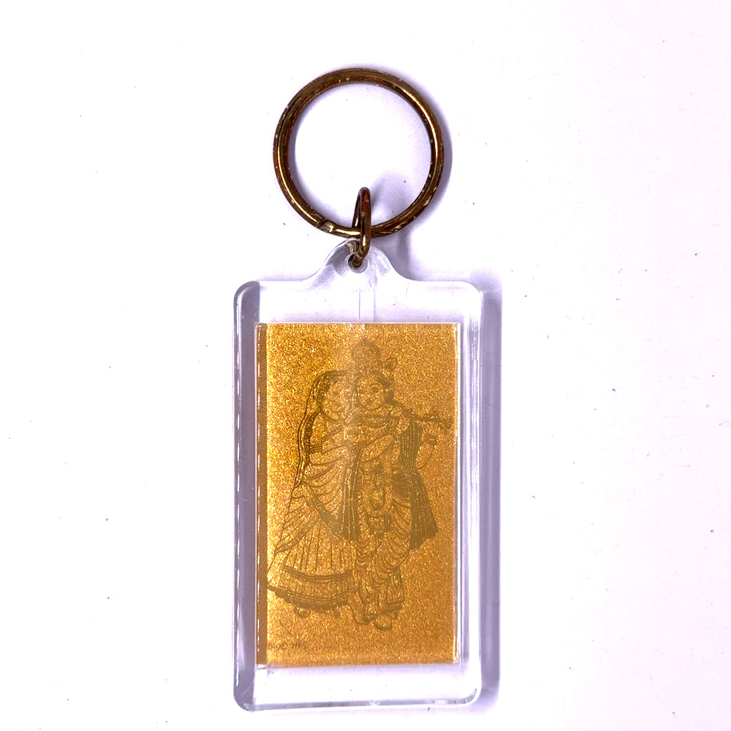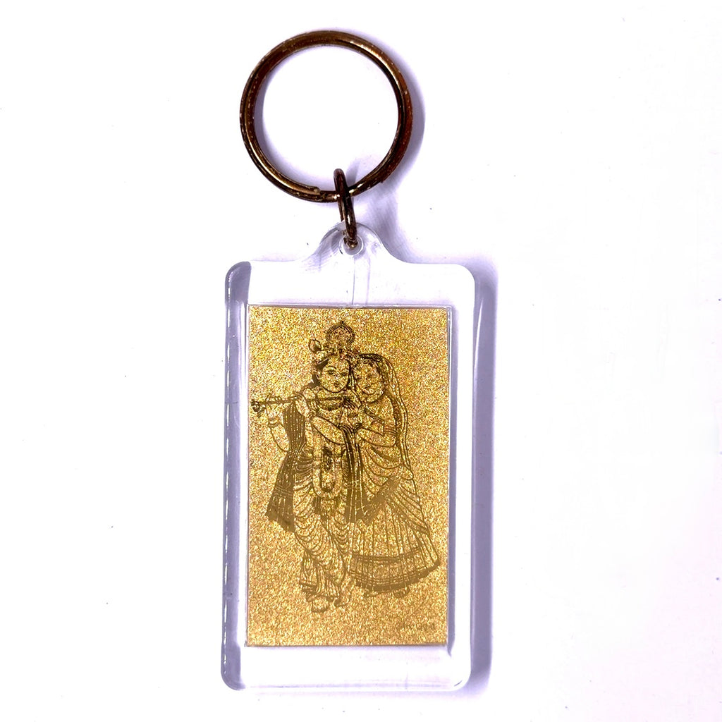 Radha Krishna Premium Keychain Laser Engraved in 24K Gold Foil Devotional Art