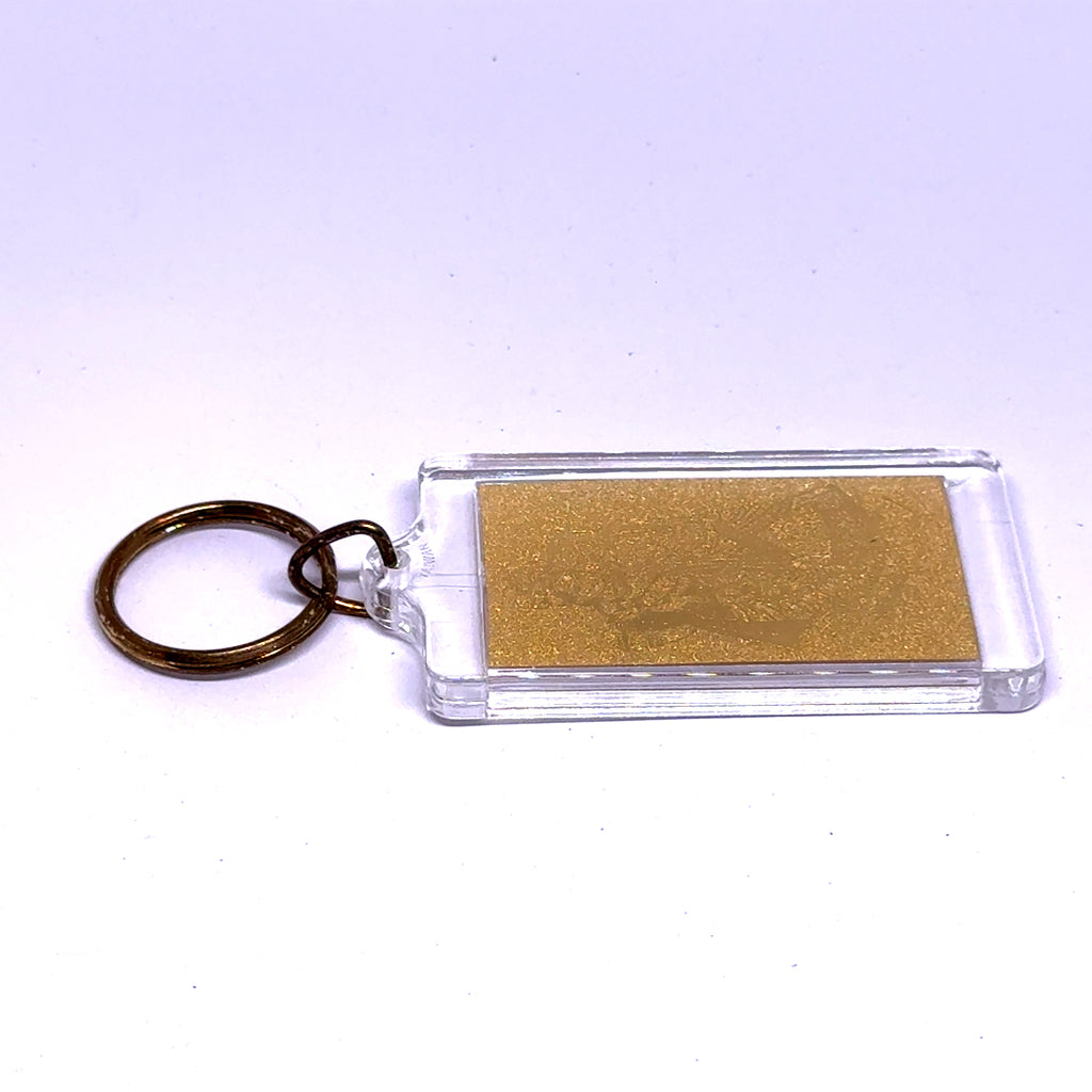 Remark 24k Gold Foil with Laser engraved finishing inside a Protective Lacquer Coating Acrylic Keychain