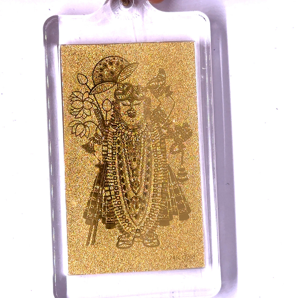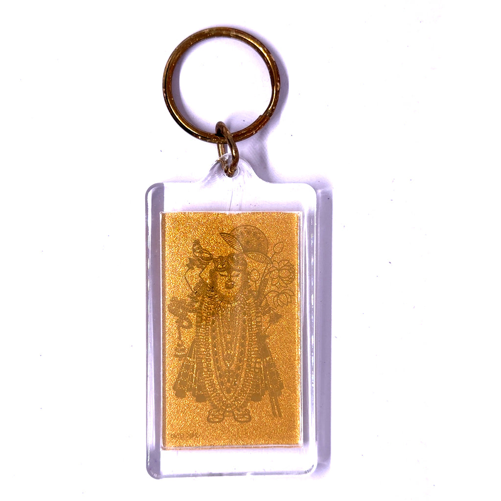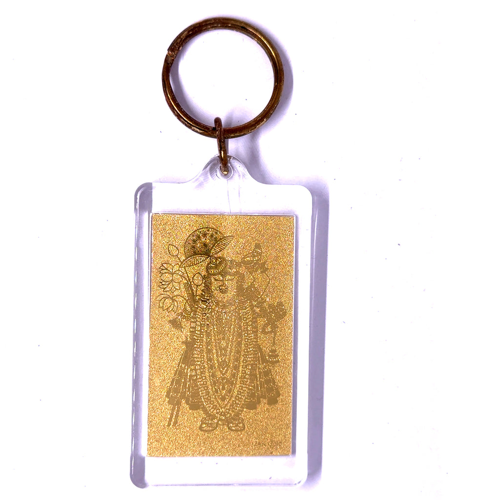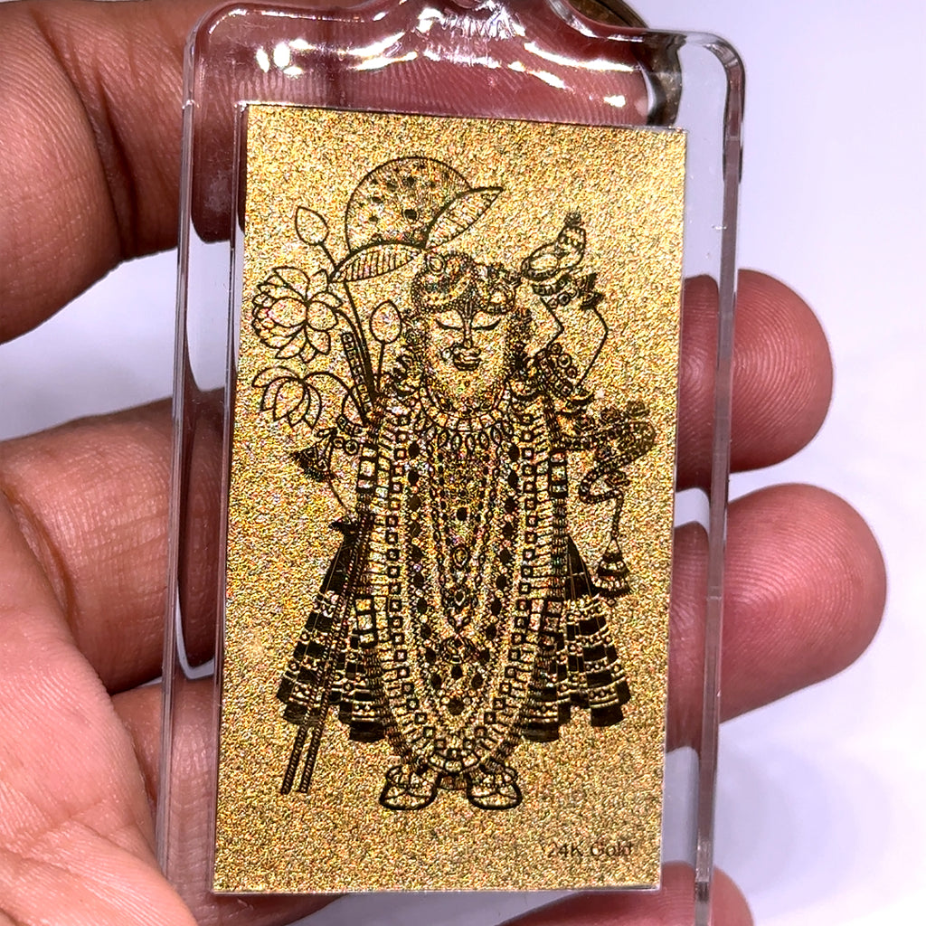 Shreenath ji 24K Gold Foil Keychain Laser Engraved Sacred Hindu Blessing & Devotional Charm Gifting