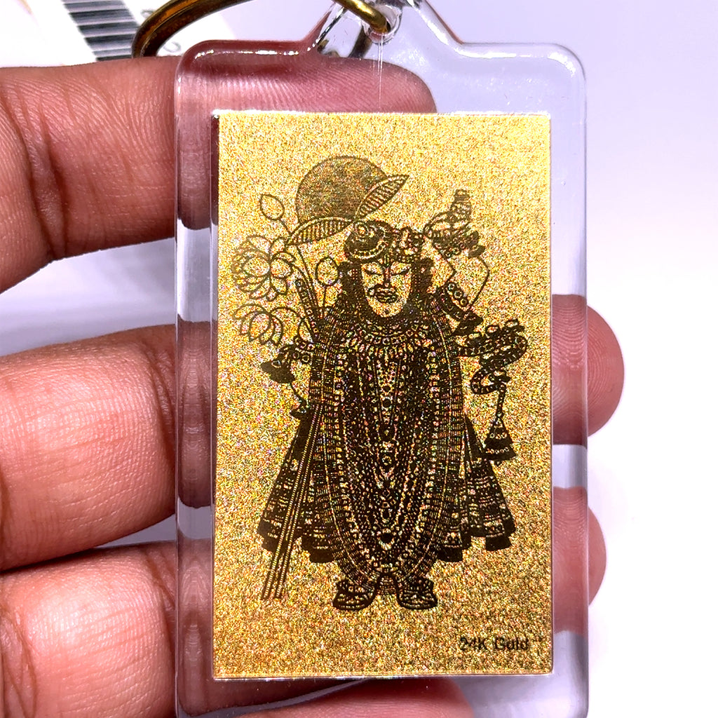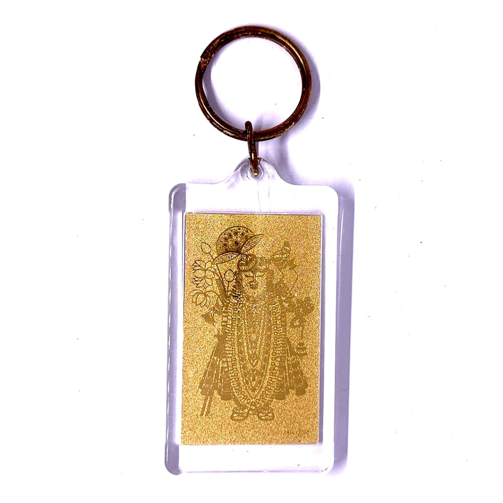 Shrinathji Laser Engraved Premium Keychain 24K Gold Foil Devotional Gift for Spiritual Strength Gift