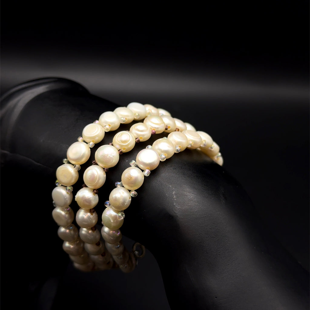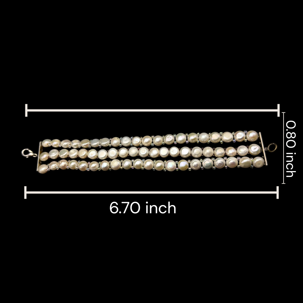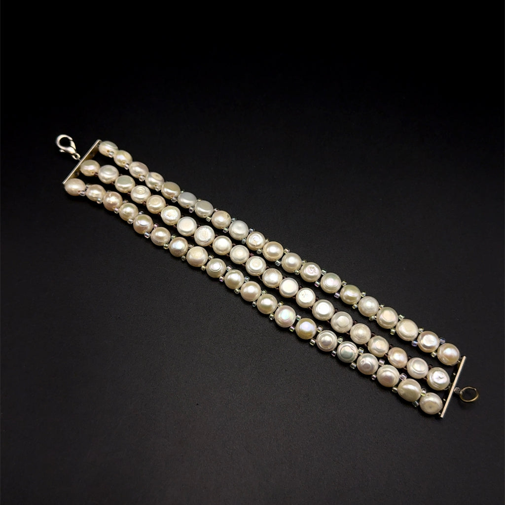 Freshwater Pearl Cool White Button Shape Bracelet Symbol of Purity Classic Beauty and Heart Soothing Pearl Energy