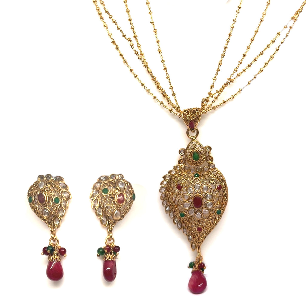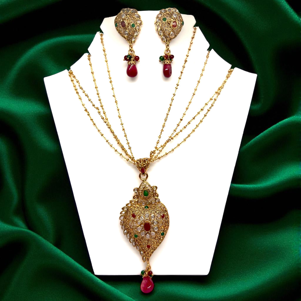 The drop pendant adds a touch of movement and sophistication, while the coordinated earrings bring balance and harmony to the look. Perfect for special occasions, evening wear, or as a thoughtful gift, this set reflects a sense of refined beauty and enduring style that never fades.
