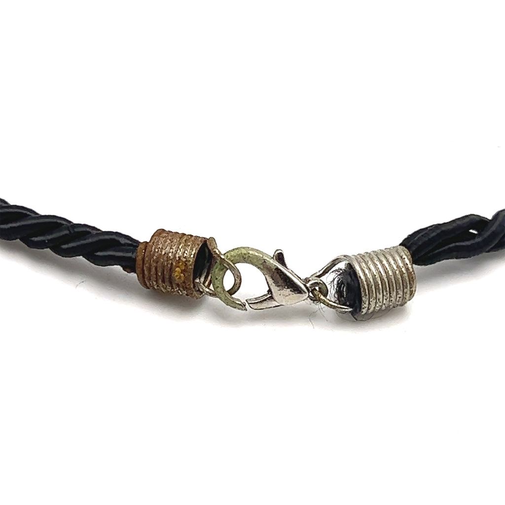 Natural Chalcedony Gemstone 29mm Tumble Shape with Black Twisted Cord Pendant Necklace
