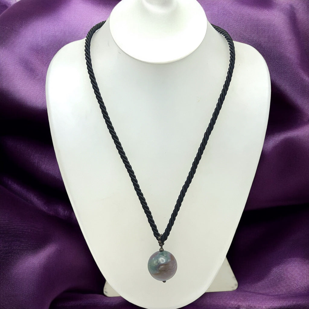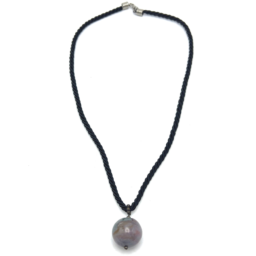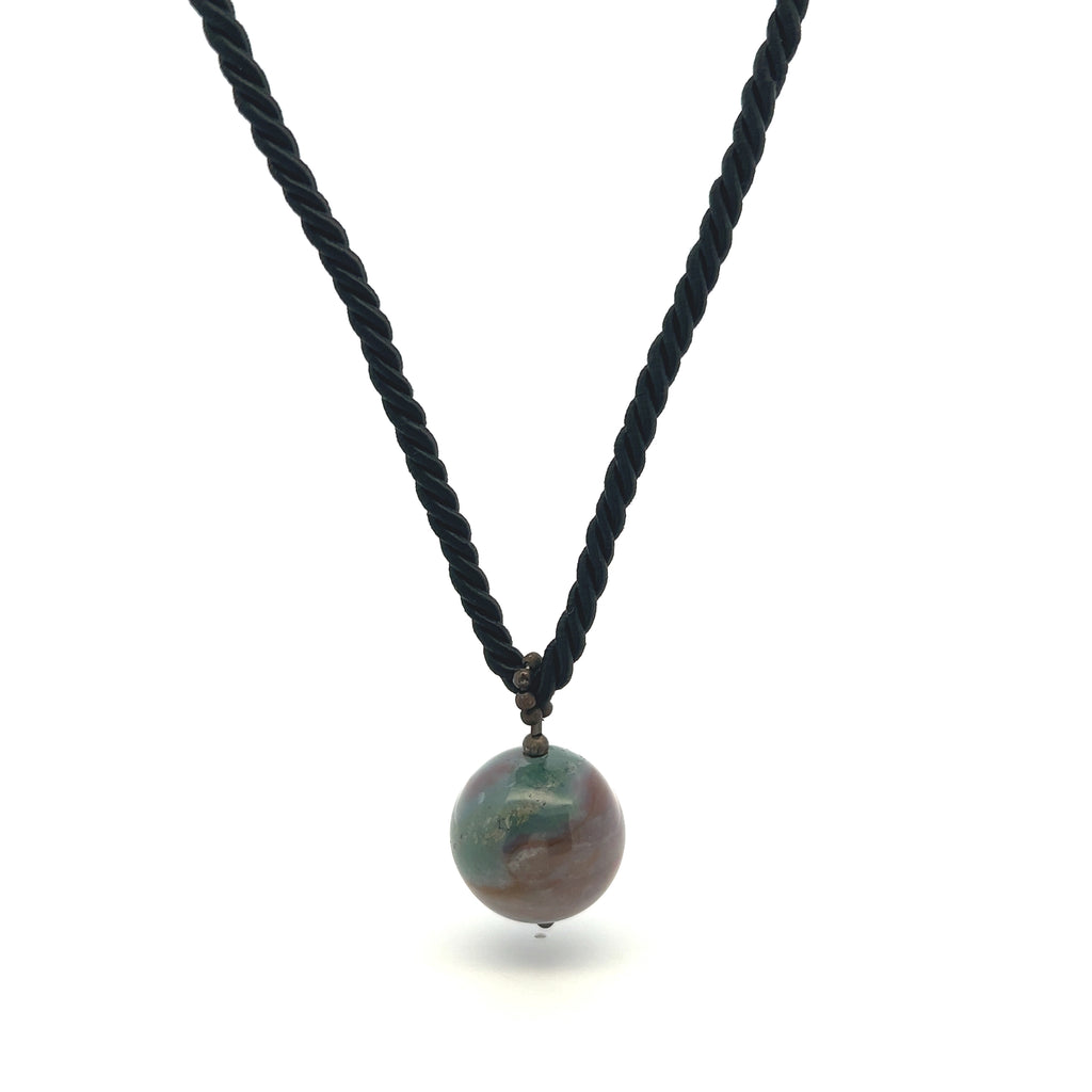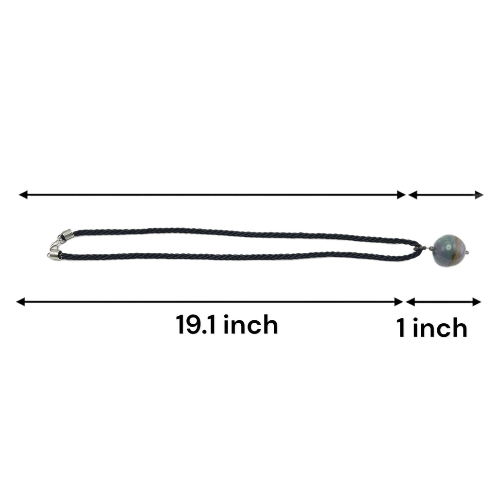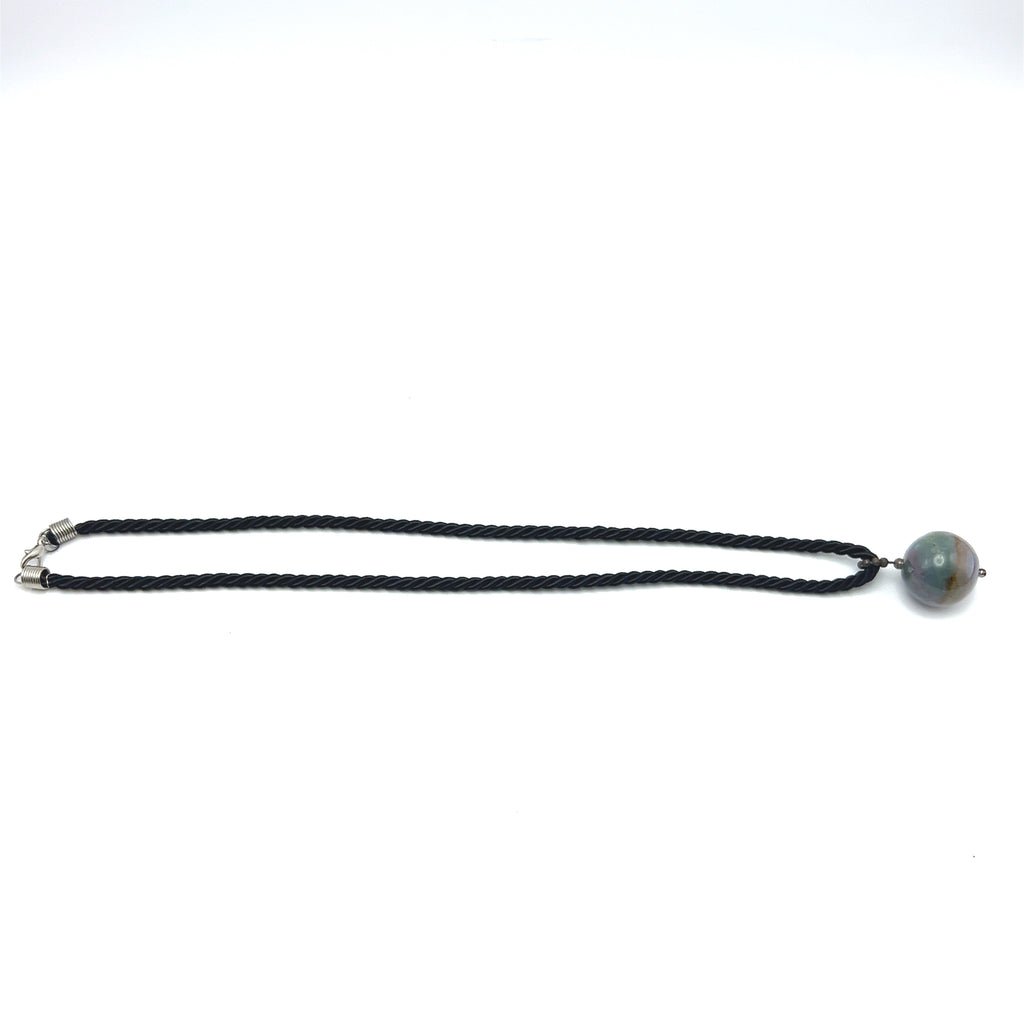 Natural Jasper Gemstone 20mm Ball with Black Twisted Cord Pendant Necklace