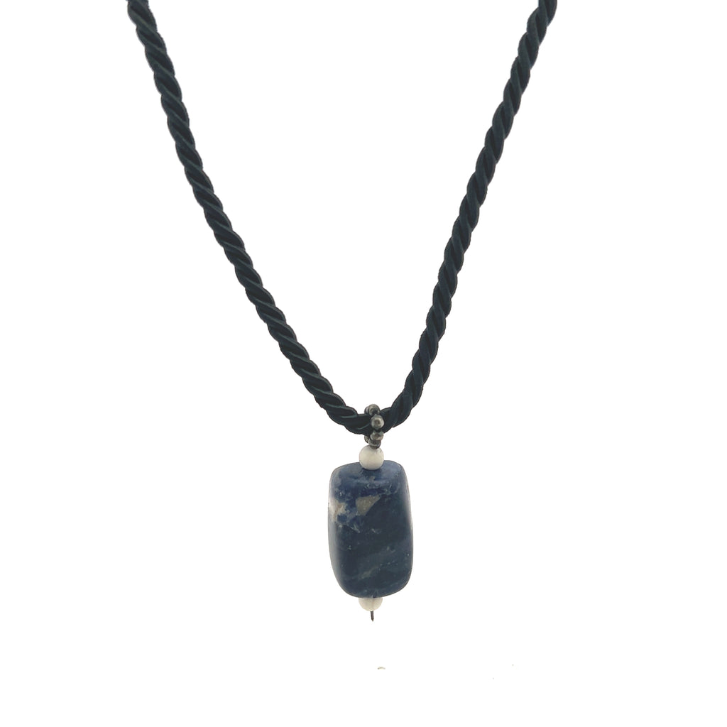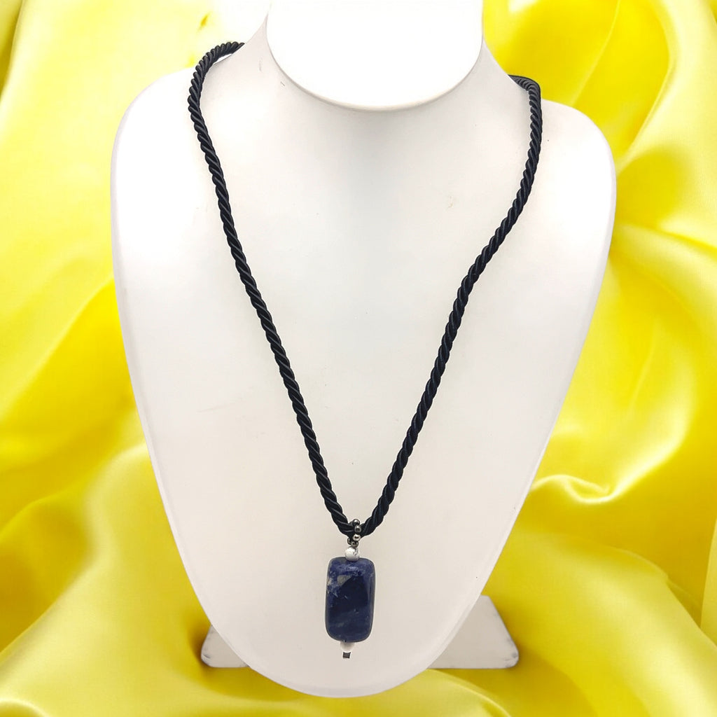 Celebrate your style with this Natural Sodalite Gemstone Pendant Necklace, featuring a beautifully carved fancy-shaped sodalite centerpiece paired perfectly with a handcrafted black twisted cord. The deep royal blue tones with white veining create a striking, elegant contrast against the classic black cord, offering a sophisticated, modern look that effortlessly elevates everyday outfits.
