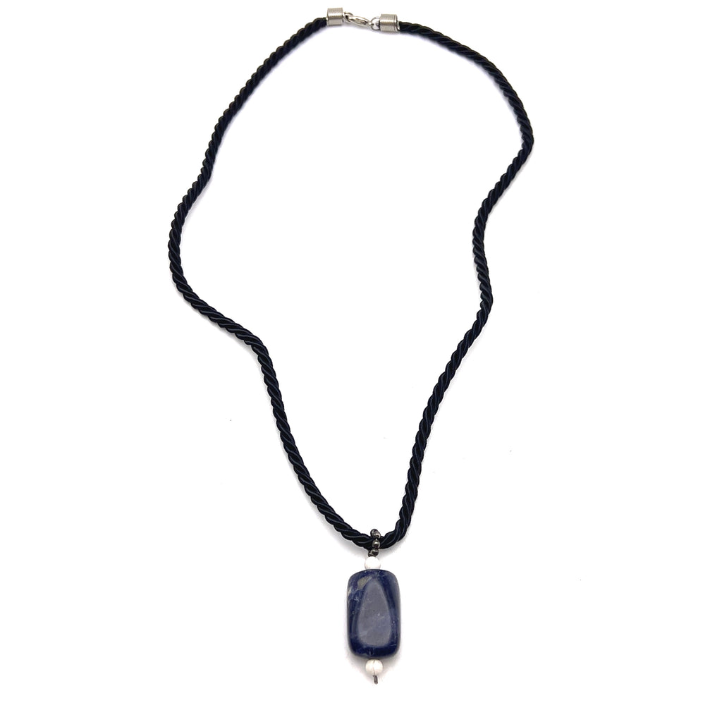 Natural Sodalite Gemstone 24mm Fancy Shape with Black Twisted Cord Pendant Necklace