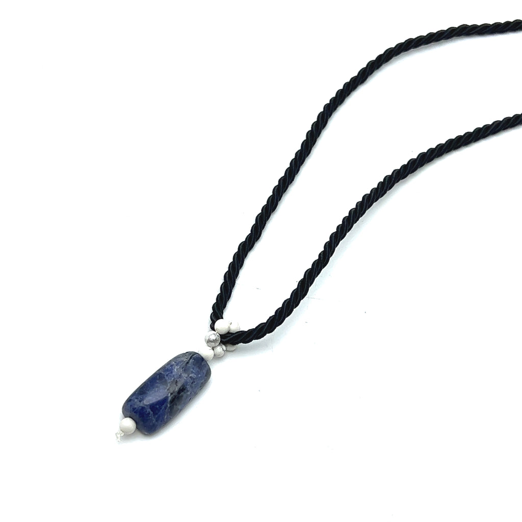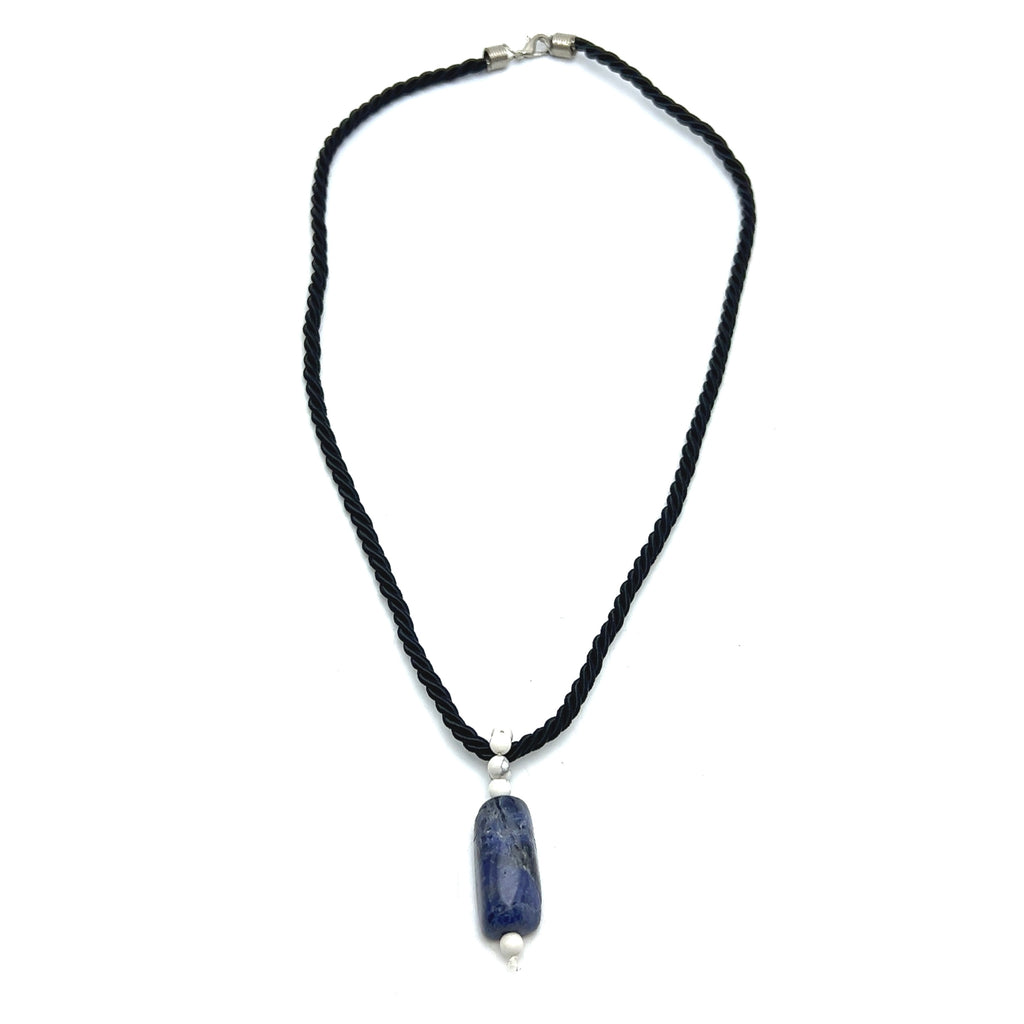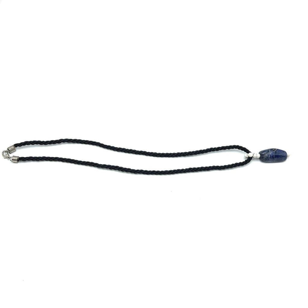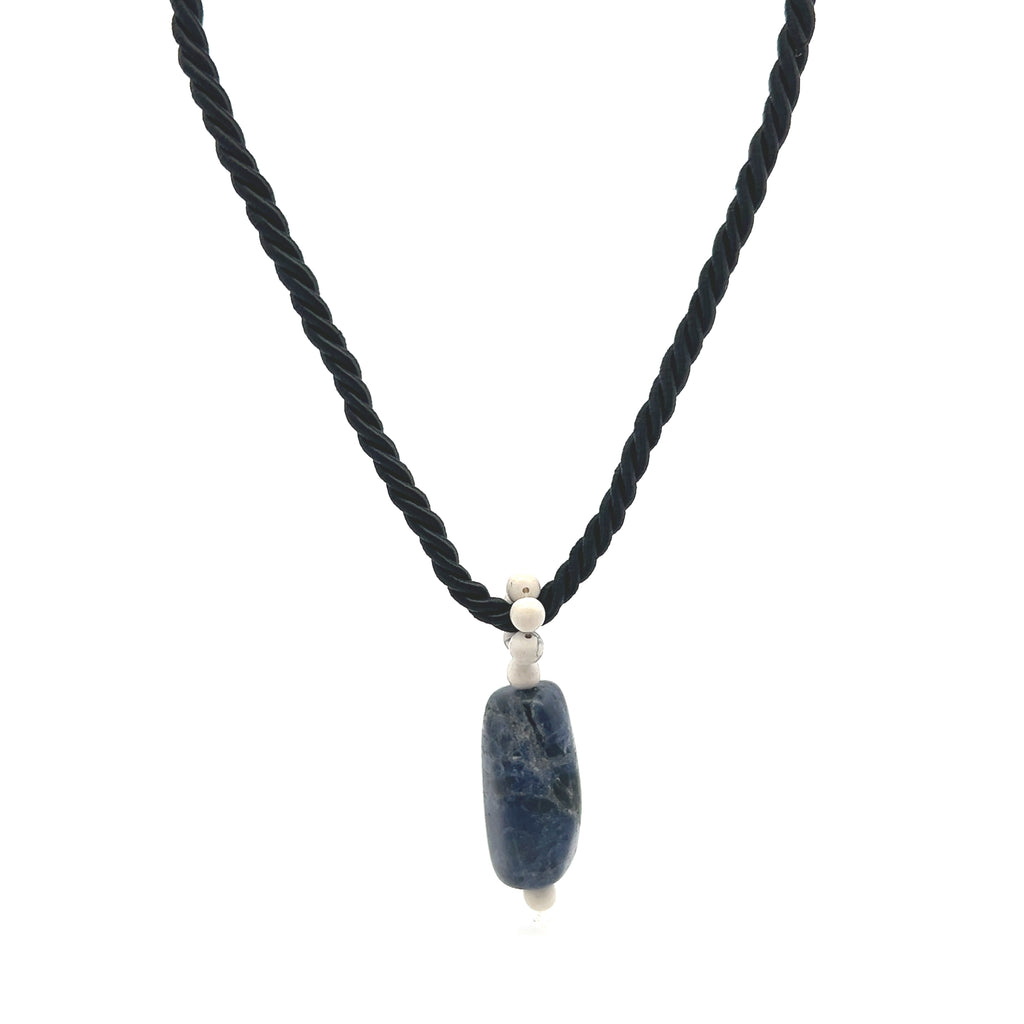 Celebrate your style with this Natural Sodalite Gemstone Pendant Necklace, featuring an impressively carved fancy-shaped sodalite centerpiece paired perfectly with a handcrafted black twisted cord. The intense deep blue color with natural white veining makes a bold statement against the sleek black cord, perfect for those who love standout yet sophisticated pieces.