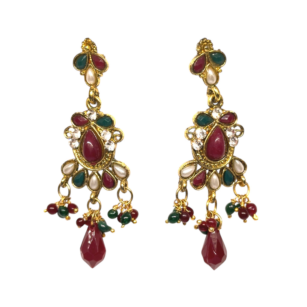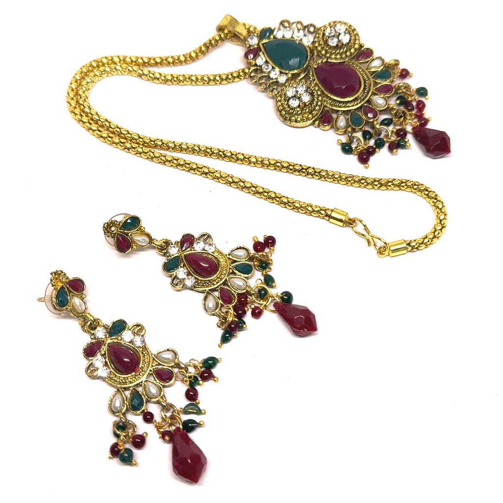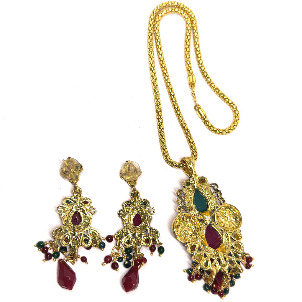 The gold-plated finish enhances the detailed craftsmanship, while the coordinated pieces create a harmonious and striking ensemble. Perfect for weddings, festive occasions, or special celebrations, this jewelry set exudes royal charm and enduring beauty, making it a treasured addition to any collection.