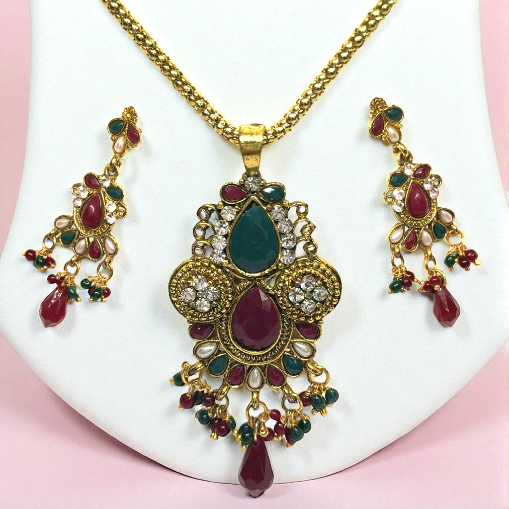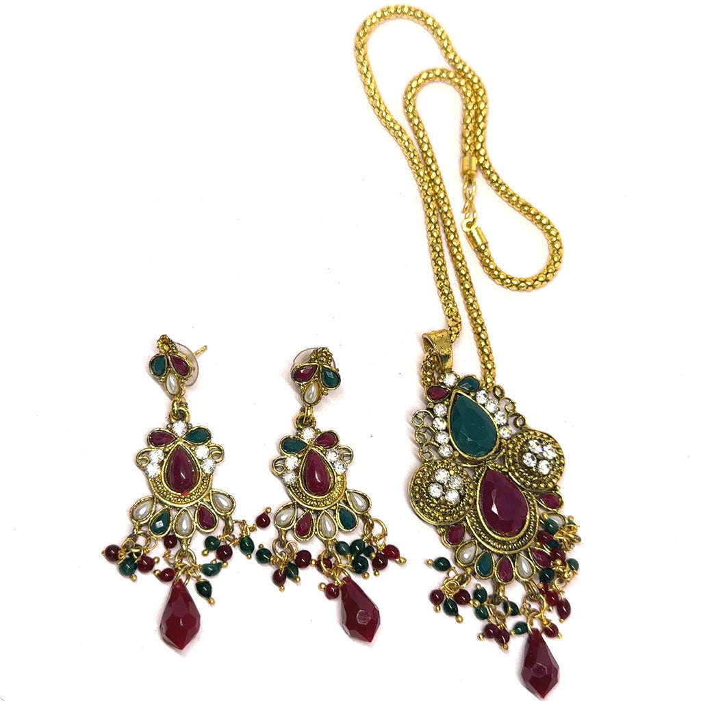Celebrate regal elegance with this Royal Traditional Pattern Gold-Plated Jewelry Set, featuring a necklace, matching earrings. Crafted with intricate traditional patterns, this set embodies heritage artistry and timeless sophistication, reflecting the grandeur of classic Indian design.