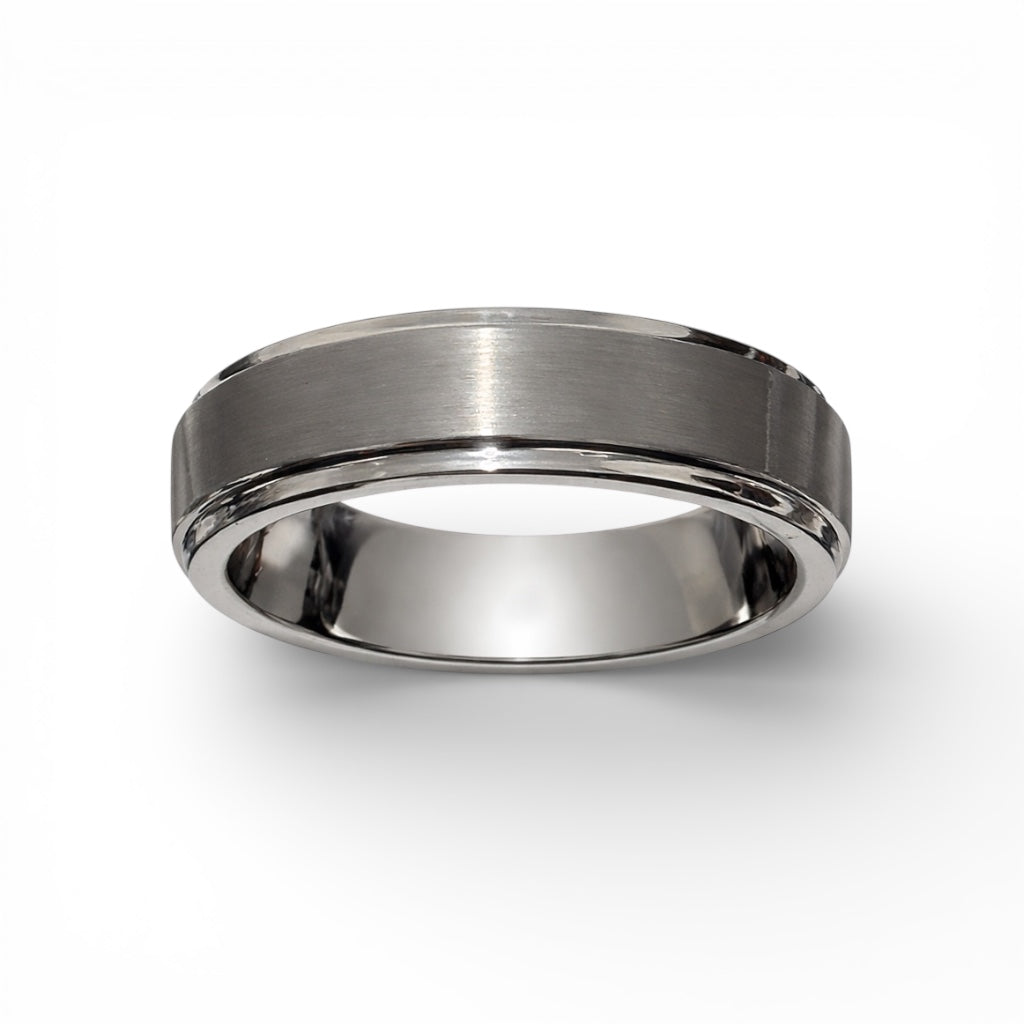 JEWELNJOY's step-edge silver tungsten band blends a brushed matte top with clean, structured edges for a modern, understated look that feels timeless.