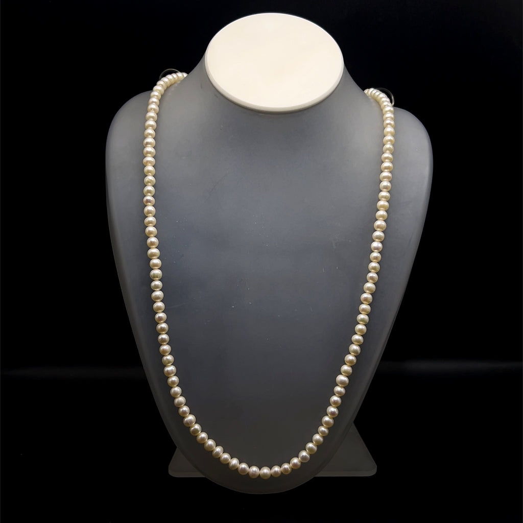 Natural Freshwater Pearl 5mm Cream Round Necklace 31.7inch Elegant Long Strand for Grace and Healing Energy