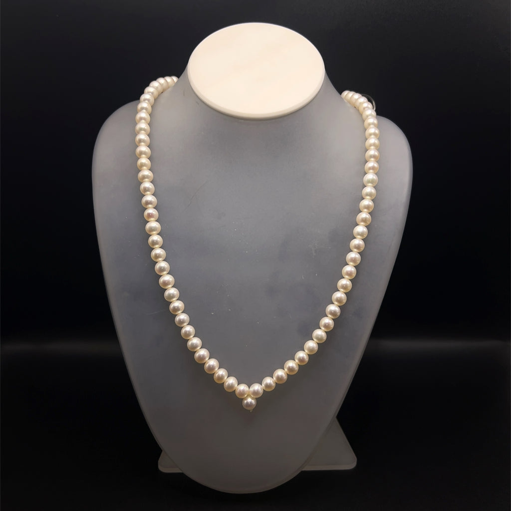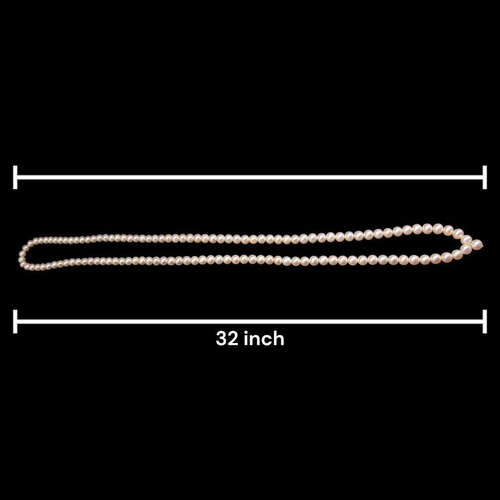 Natural Freshwater Pearl 7mm White Round Necklace 32inch Elegant Look Jewelry for Balance and Soft Radiance