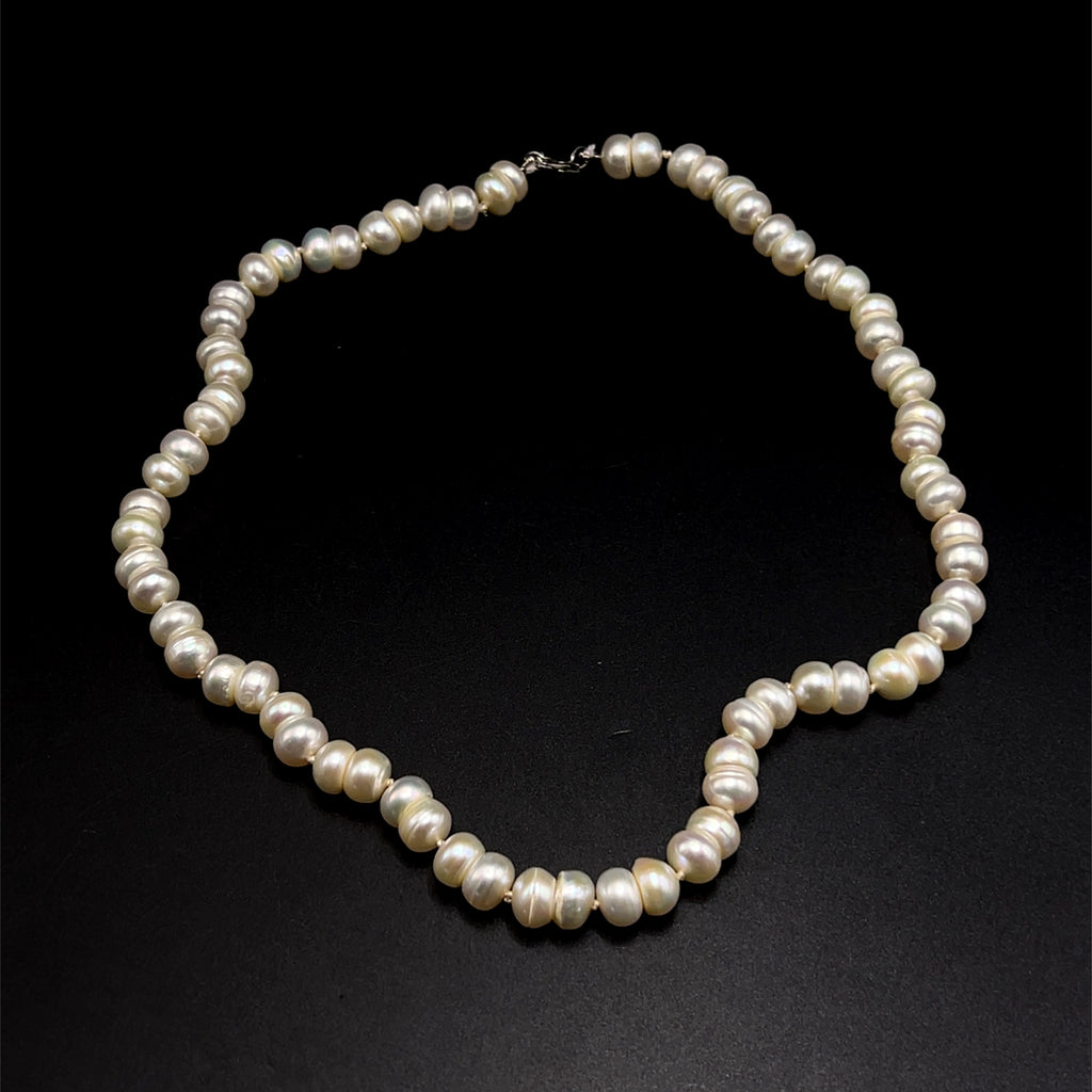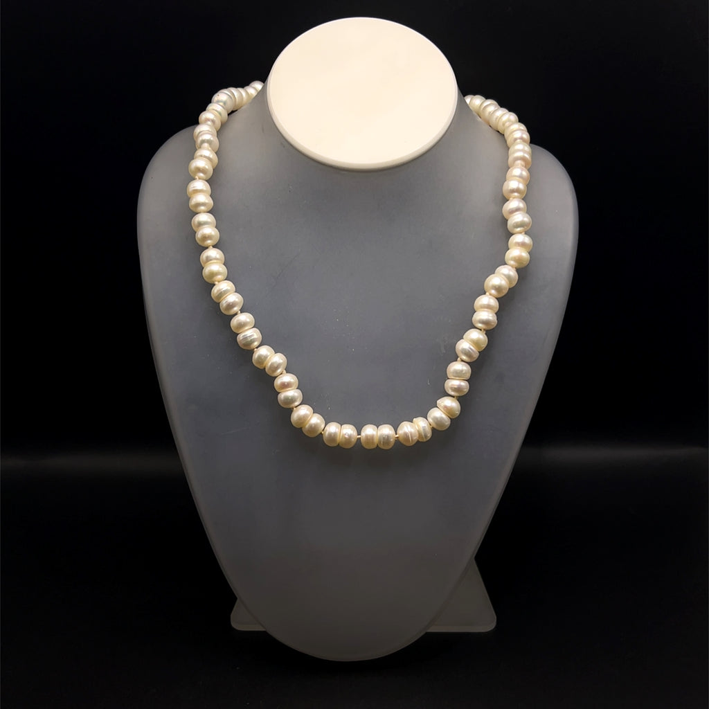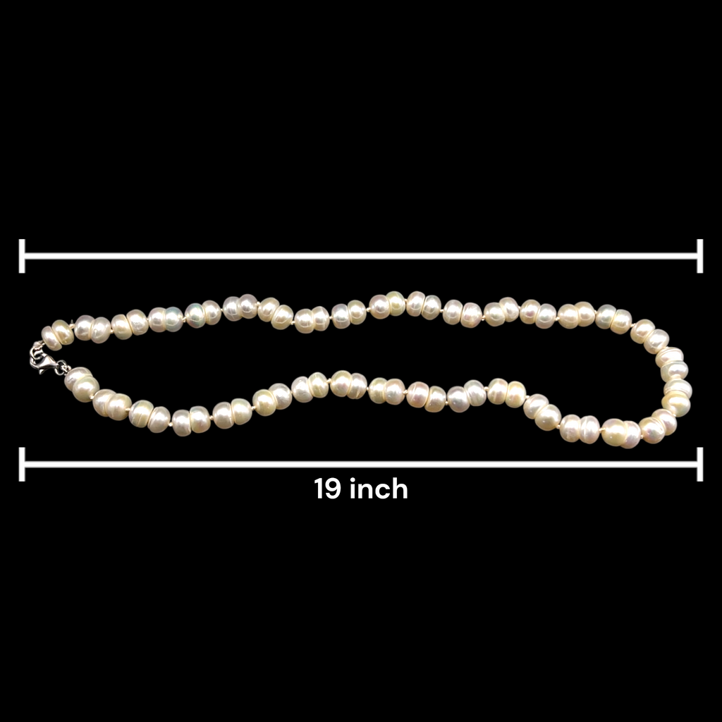 Natural Freshwater Pearl 8mm Cream Button Shape Necklace 19inch Premium Pearl Necklace for Confidence and Balance