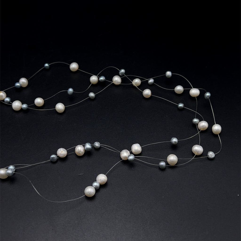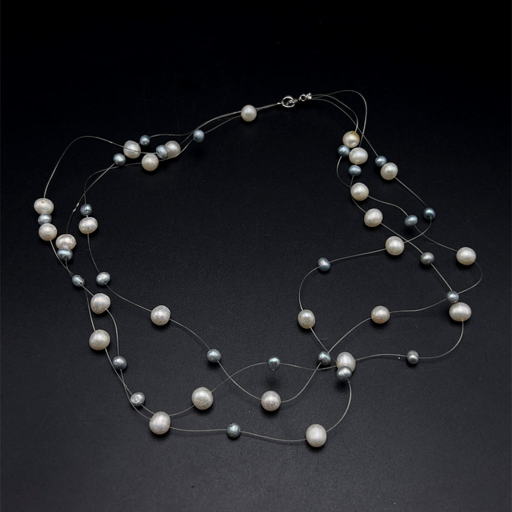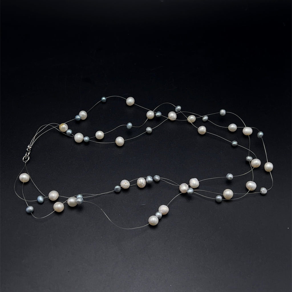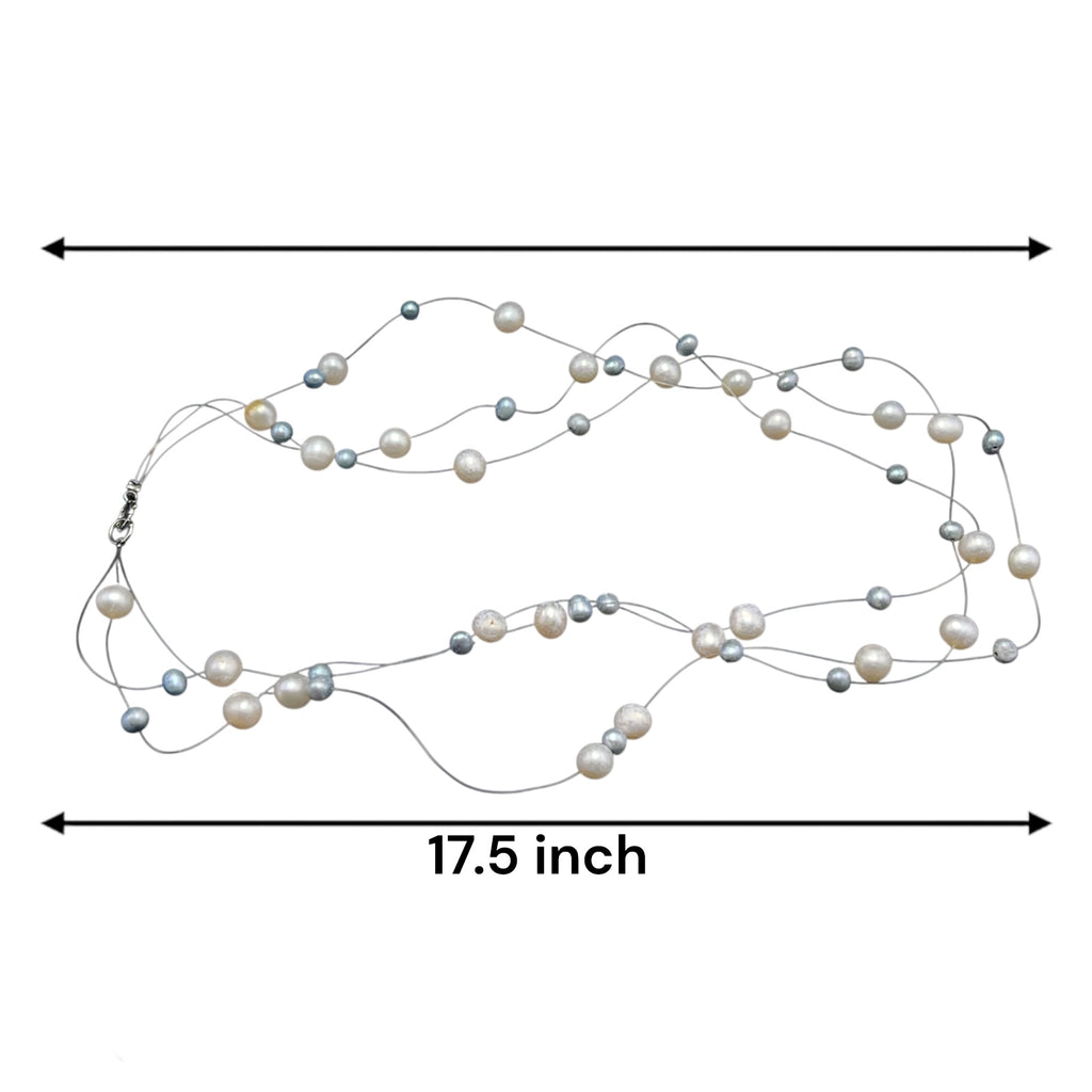 Natural Freshwater Pearl Round 6mm Oval 5x4mm White Grey Necklace 17.5inch Elegant Shine Jewelry for Harmony and Beauty