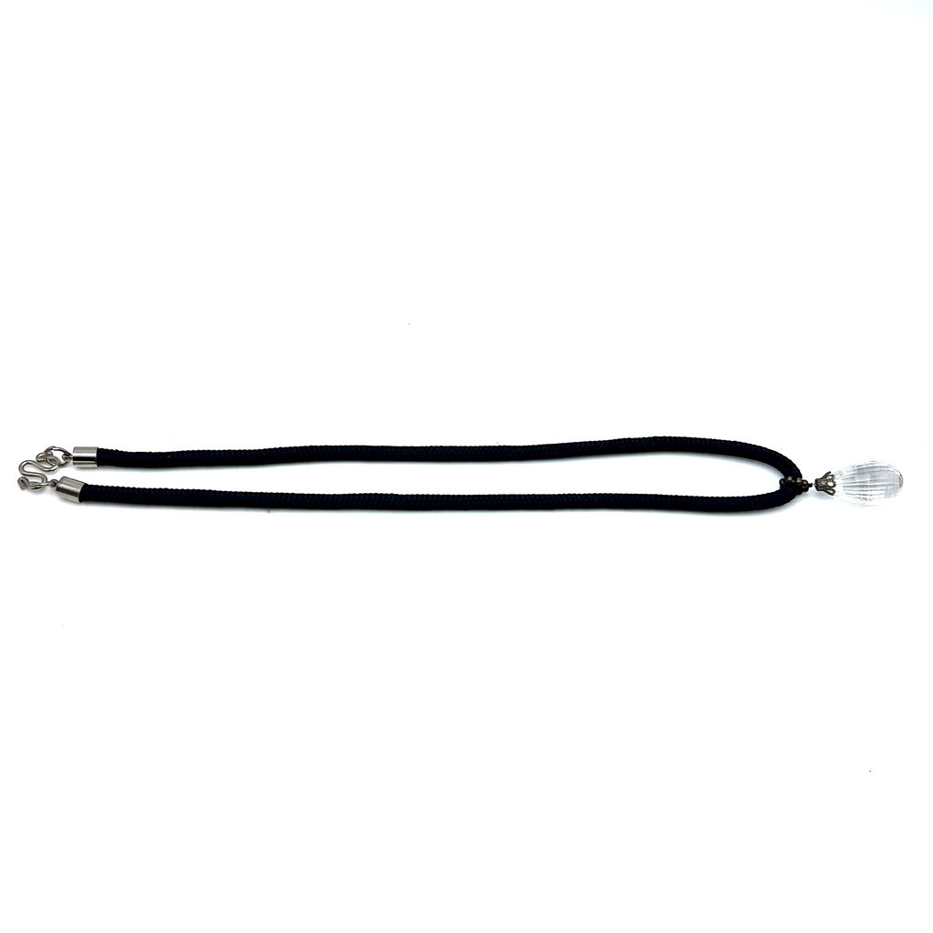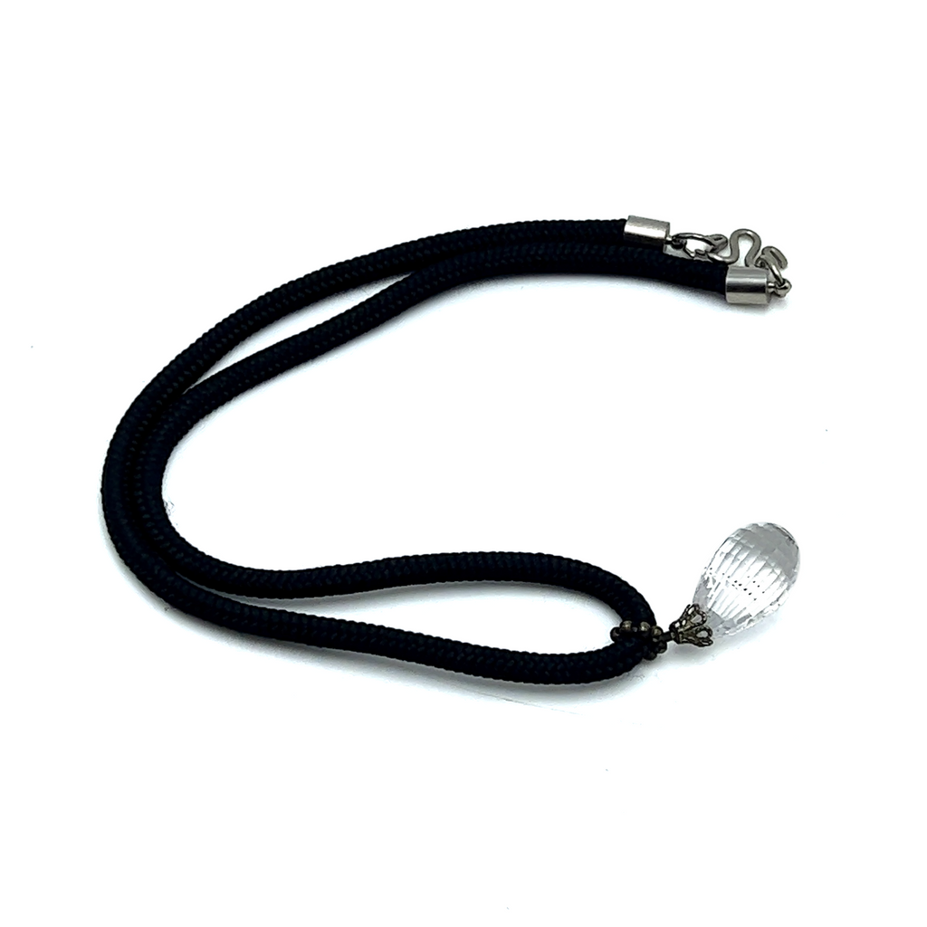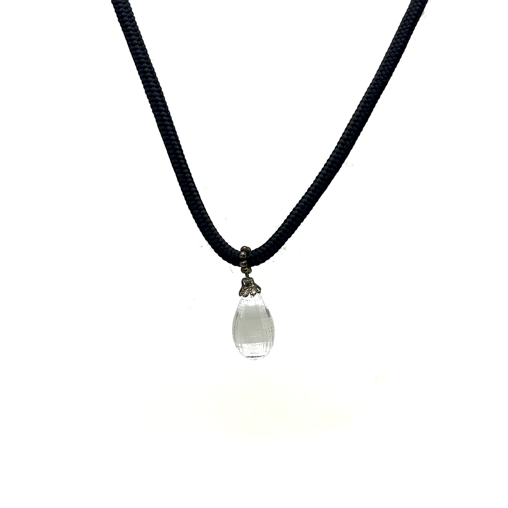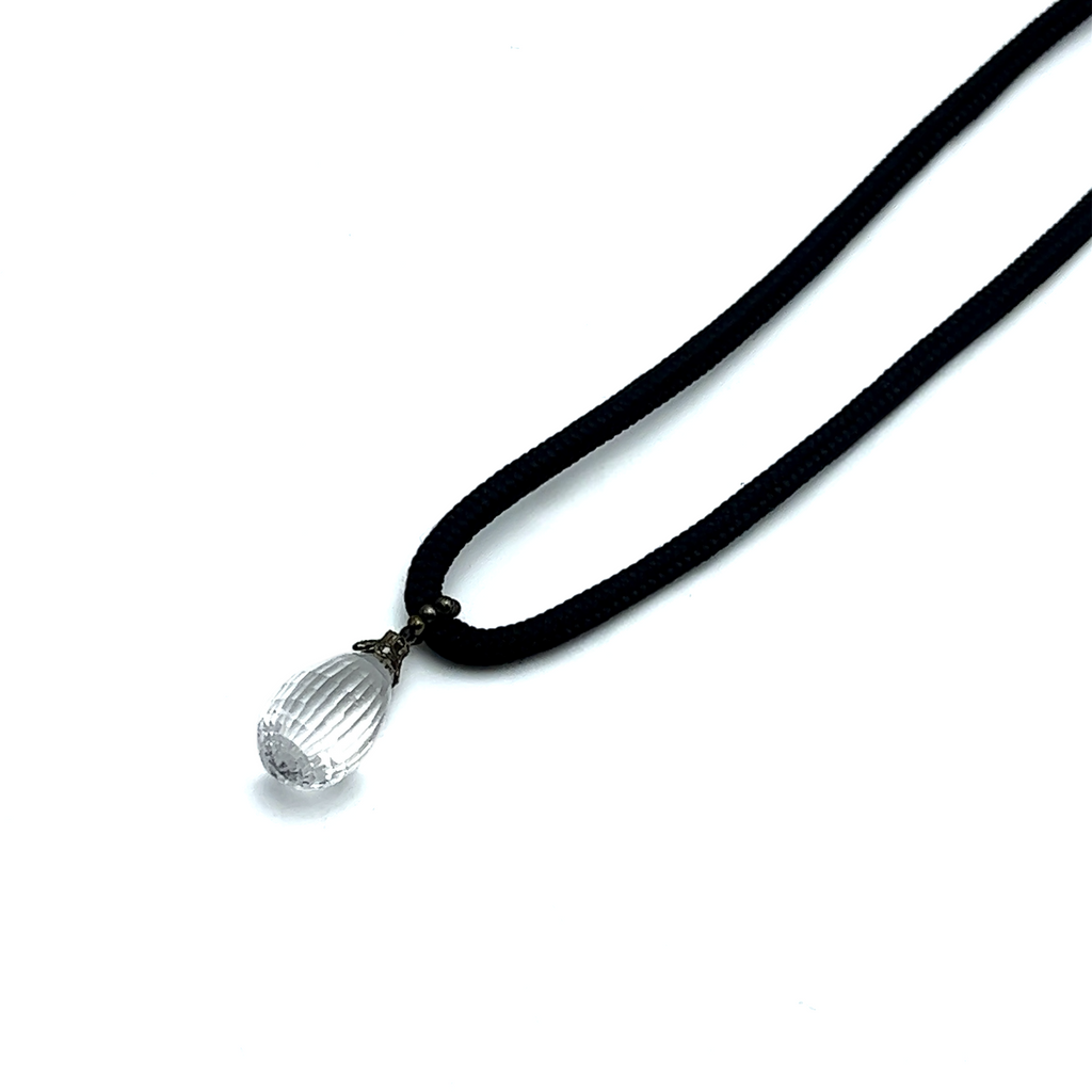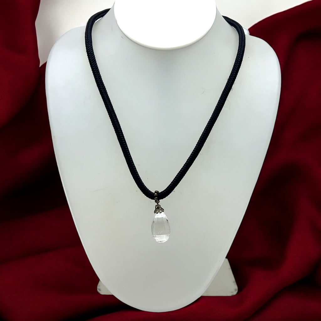 White Crystal Drop Shape Stone 19mm with Elegant Black Twisted Cord Pendant Necklace