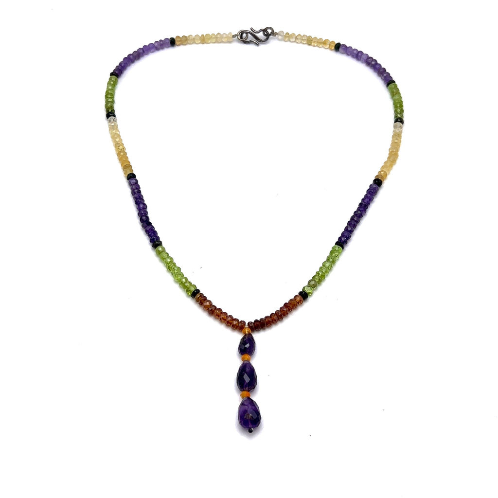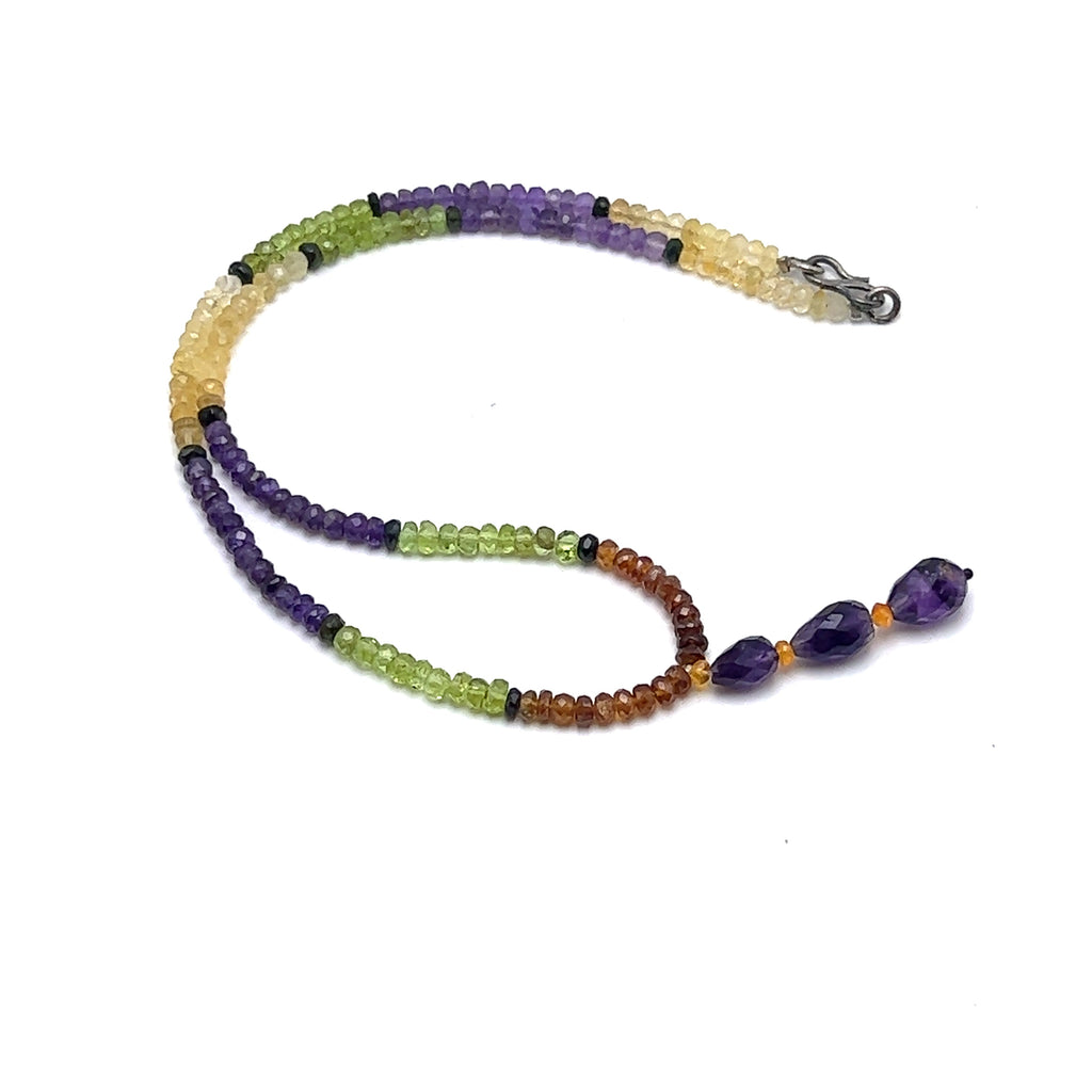 Amethyst Natural, Peridot, Spessartite Garnet, and Citrine Necklace