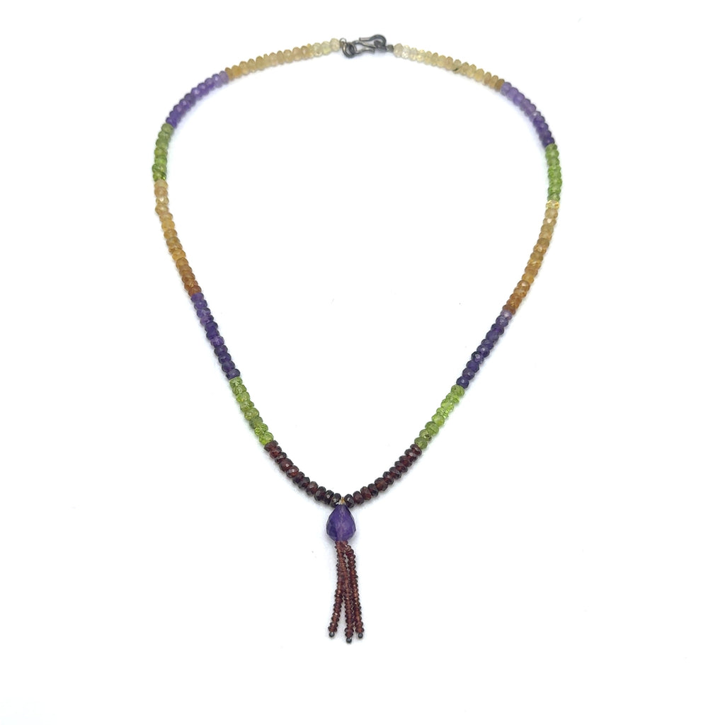 Citrine Natural, Garnet, Amethyst, Peridot, and Spessartite Necklace