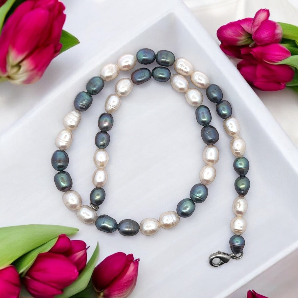 Classic Two-Tone Plain Pearl Birthstone Necklace