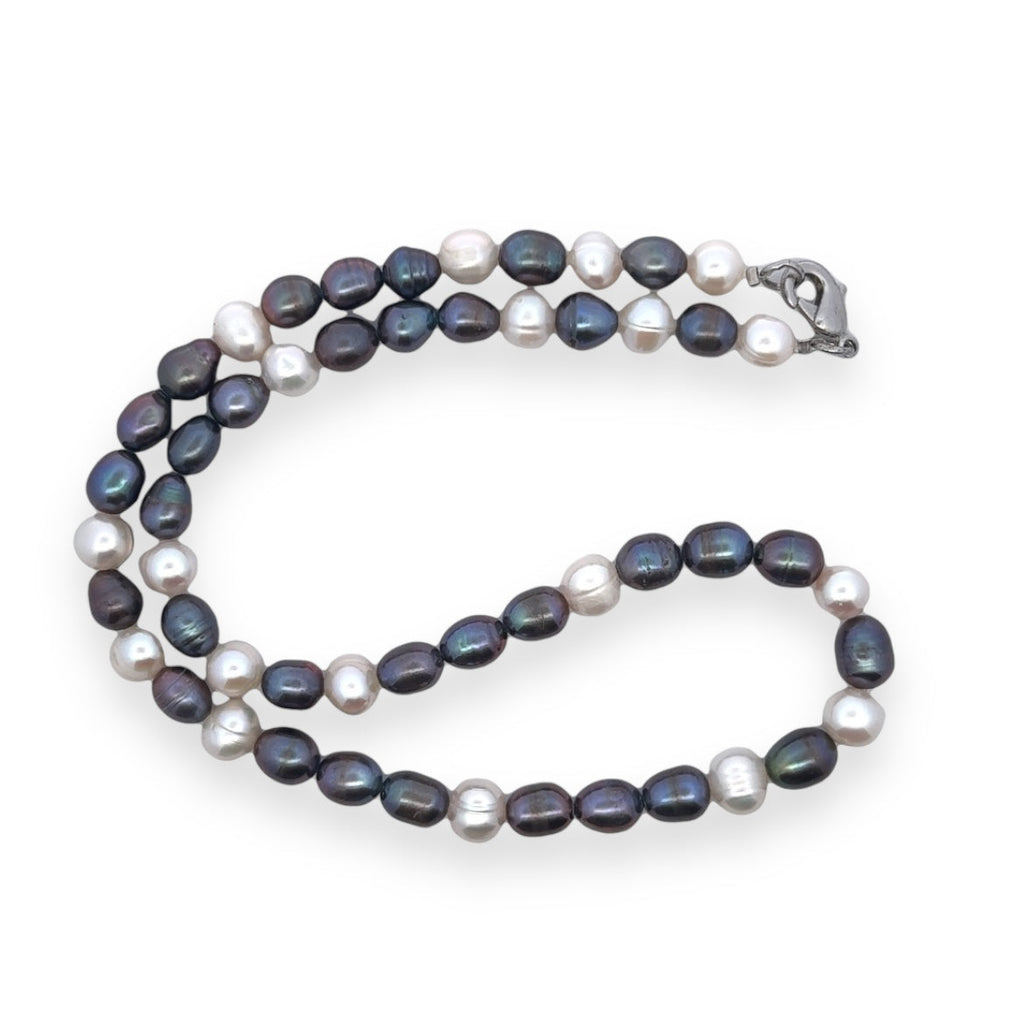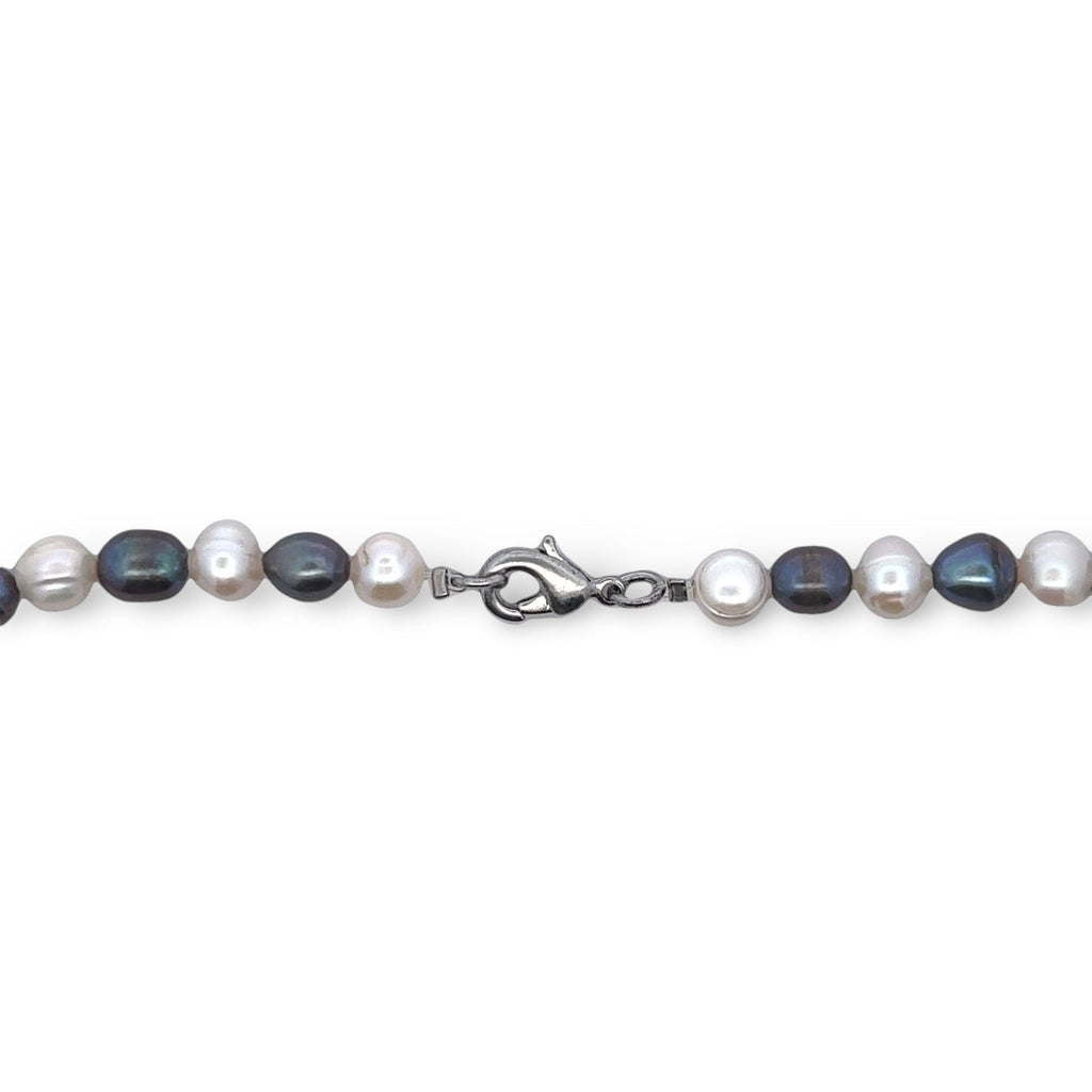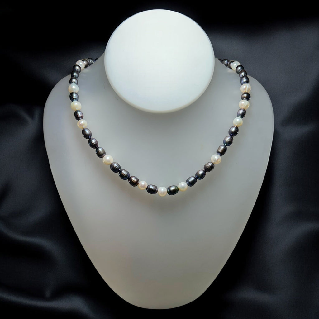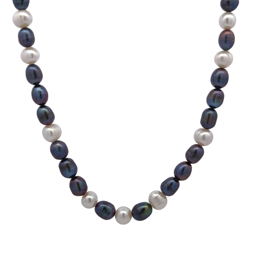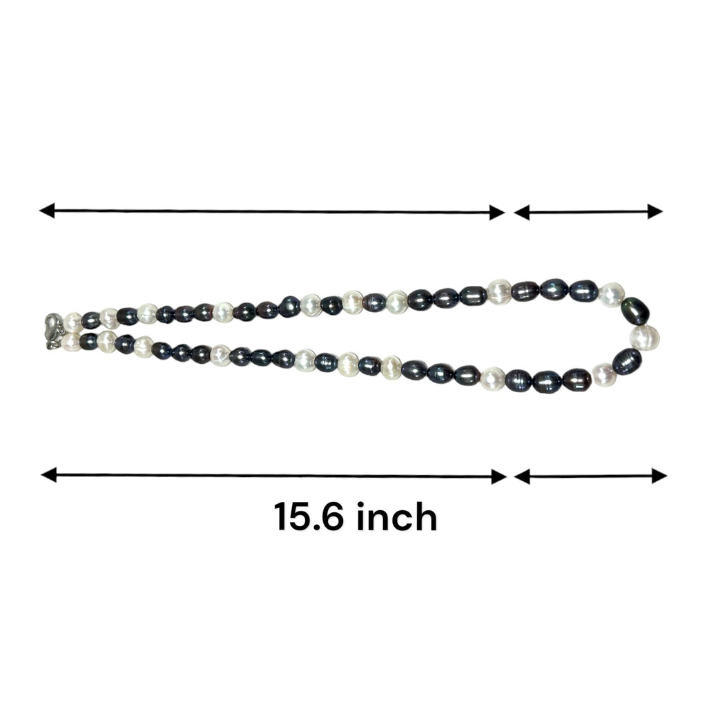 Classic Two-Tone White and Grey Plain Pearl Necklace