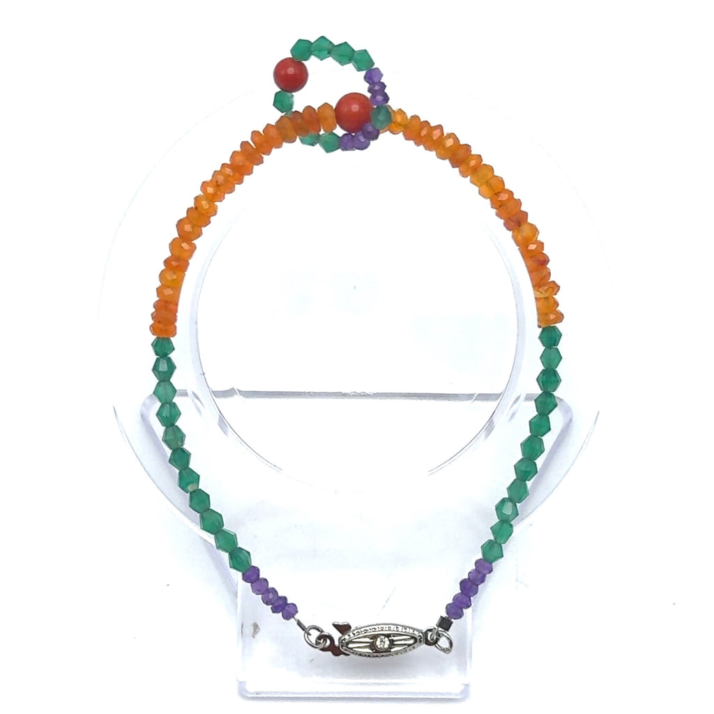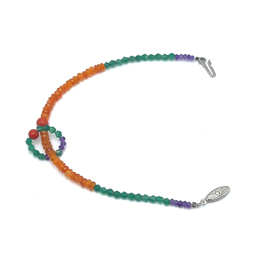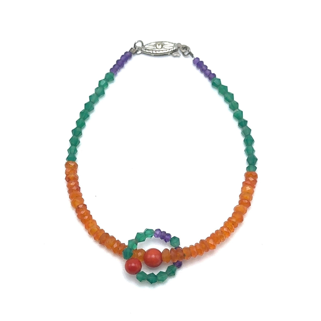 Mix Natural Semiprecious Stone with Smooth Coral Beads Bracelet