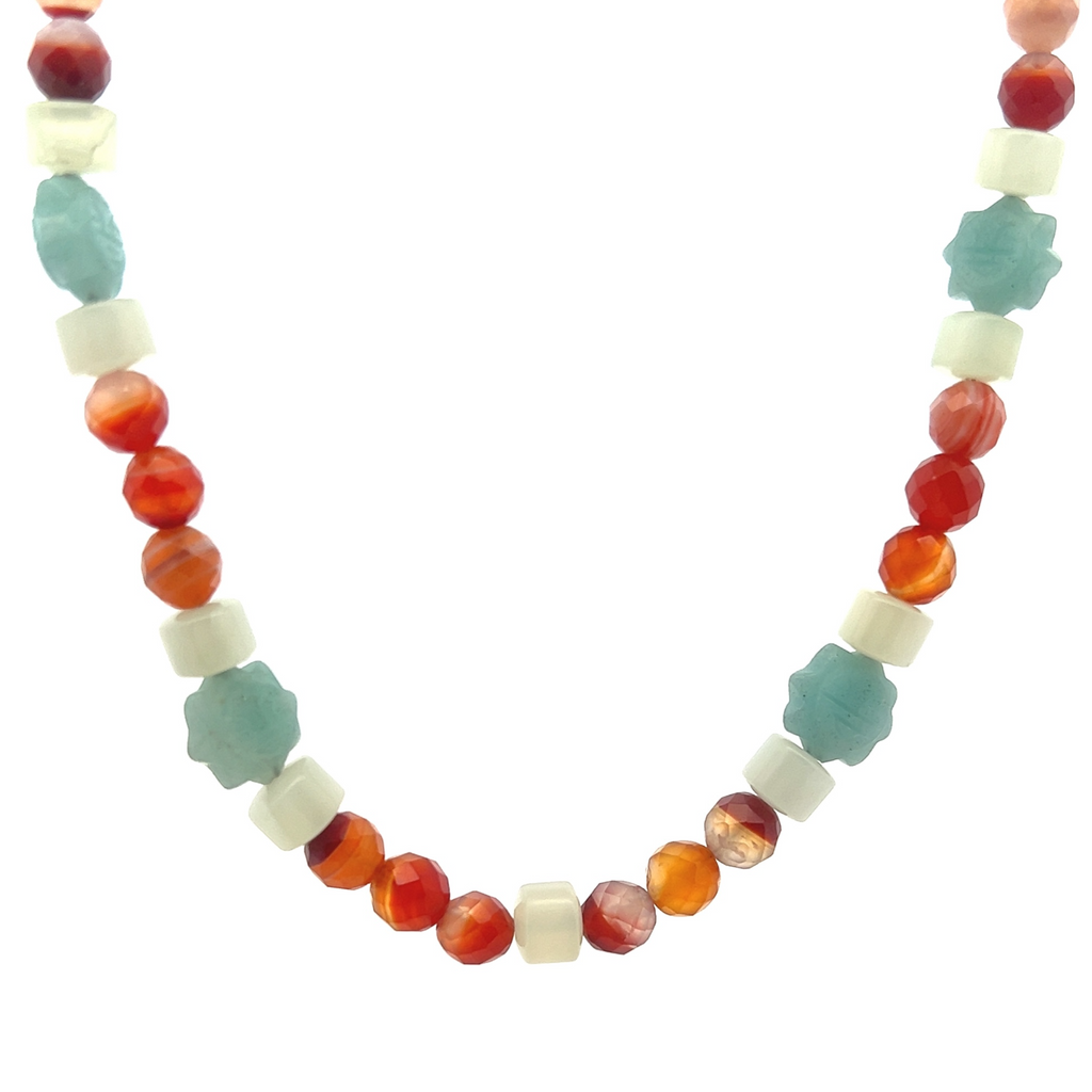 Natural Agate with Green Jade Rondelle Facet Beads Gemstone Necklace