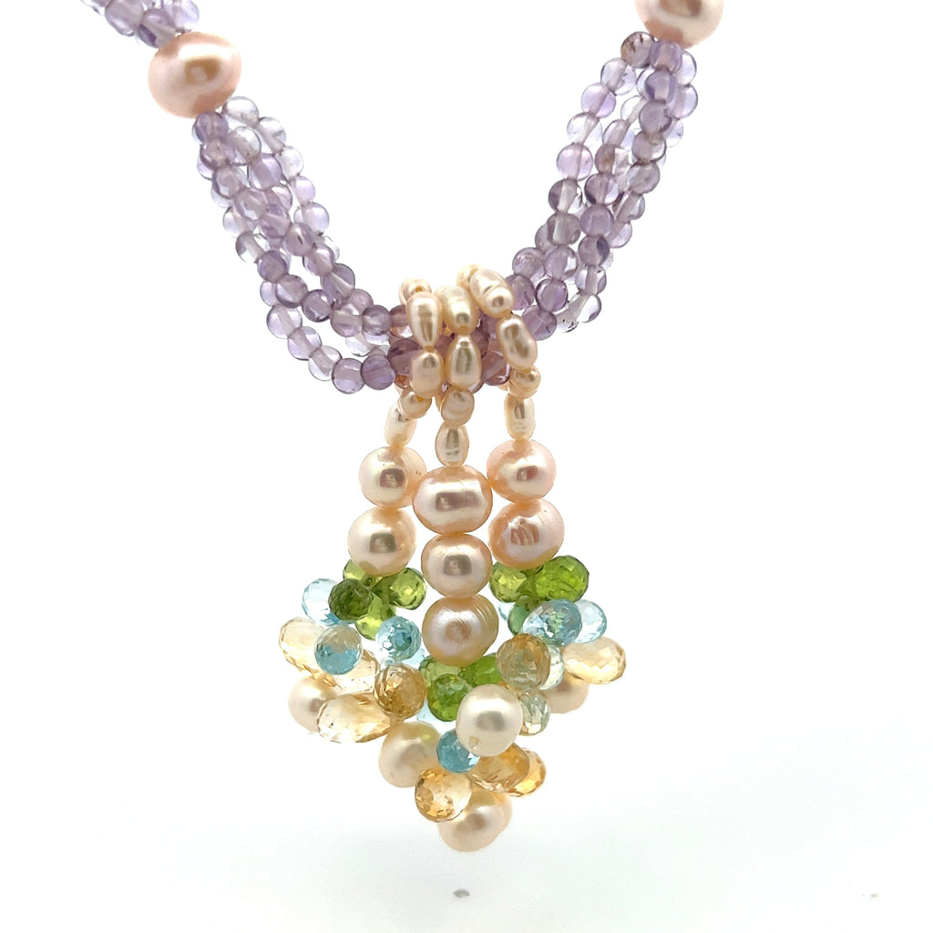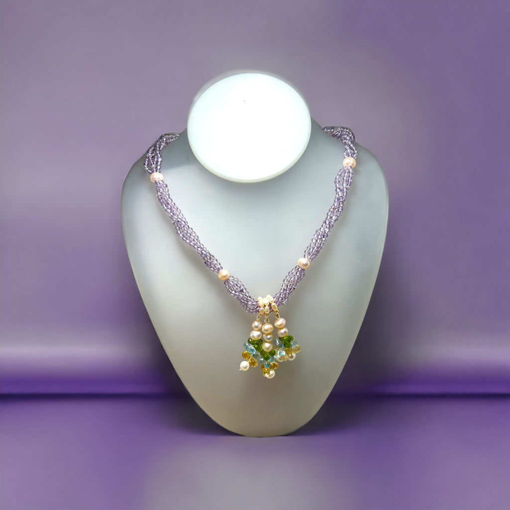 Natural Amethyst Citrine Swiss Blue Topaz Peridot Pearl Gemstone Necklace