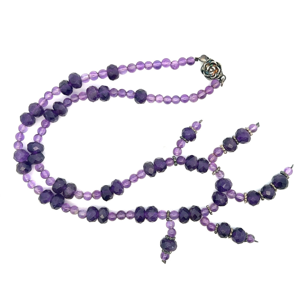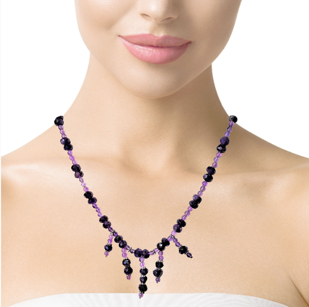 Natural Amethyst Ball & Rondelle Facet Cut Bead February Birthstone Necklace