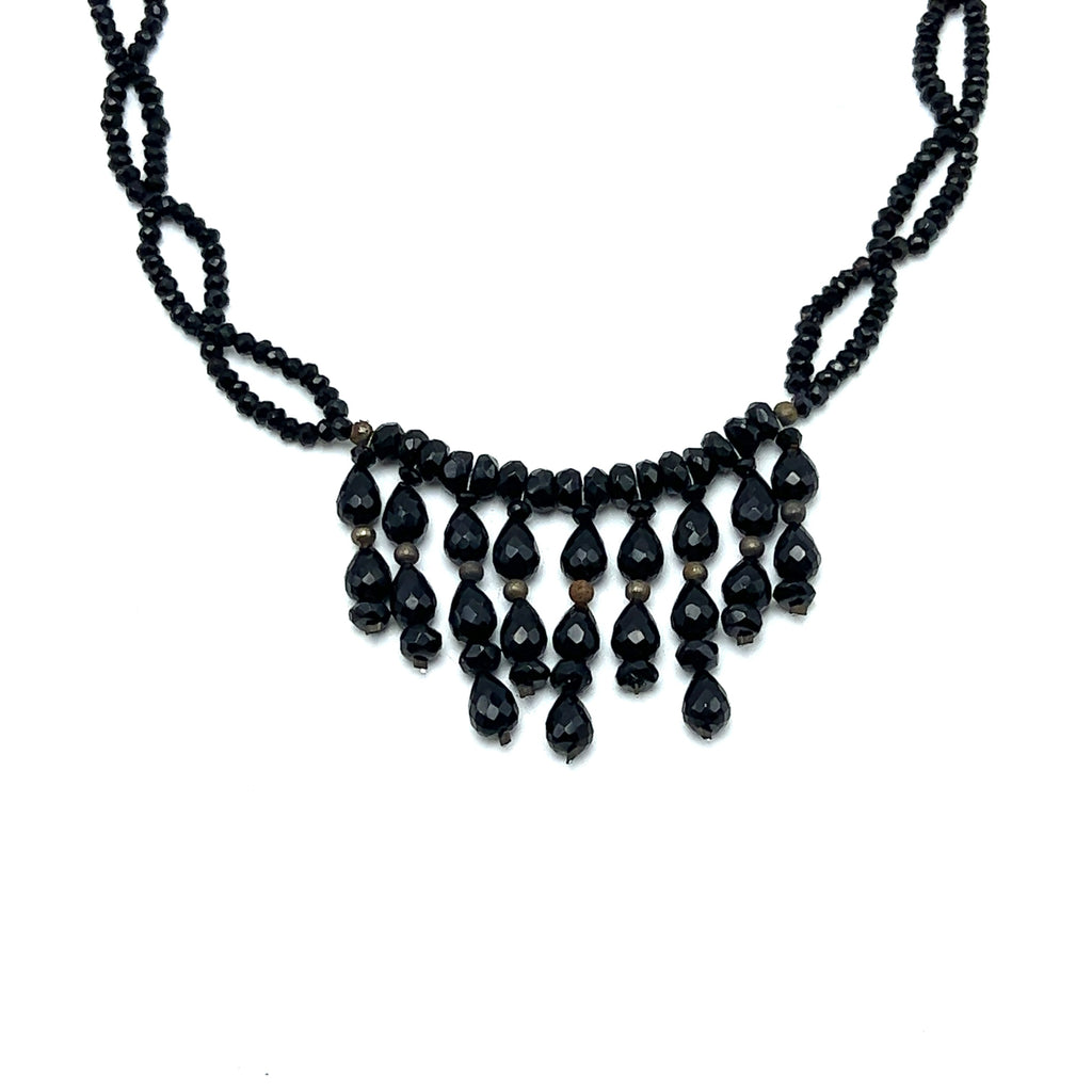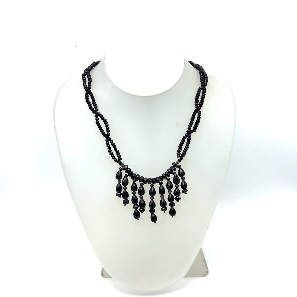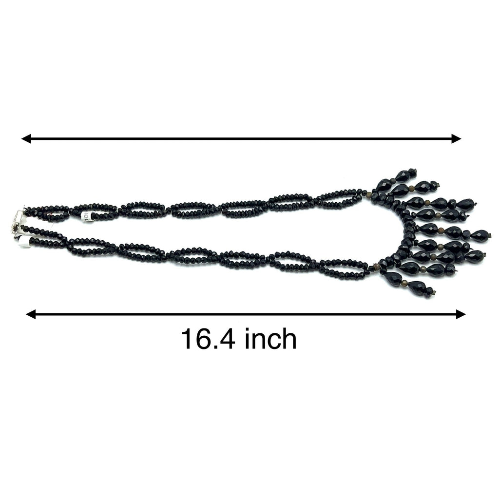 Natural Black Onyx Drop Rondelle Facet Cut Semiprecious Necklace