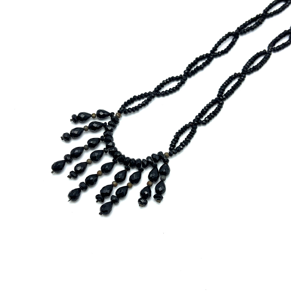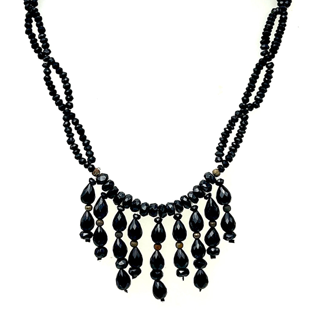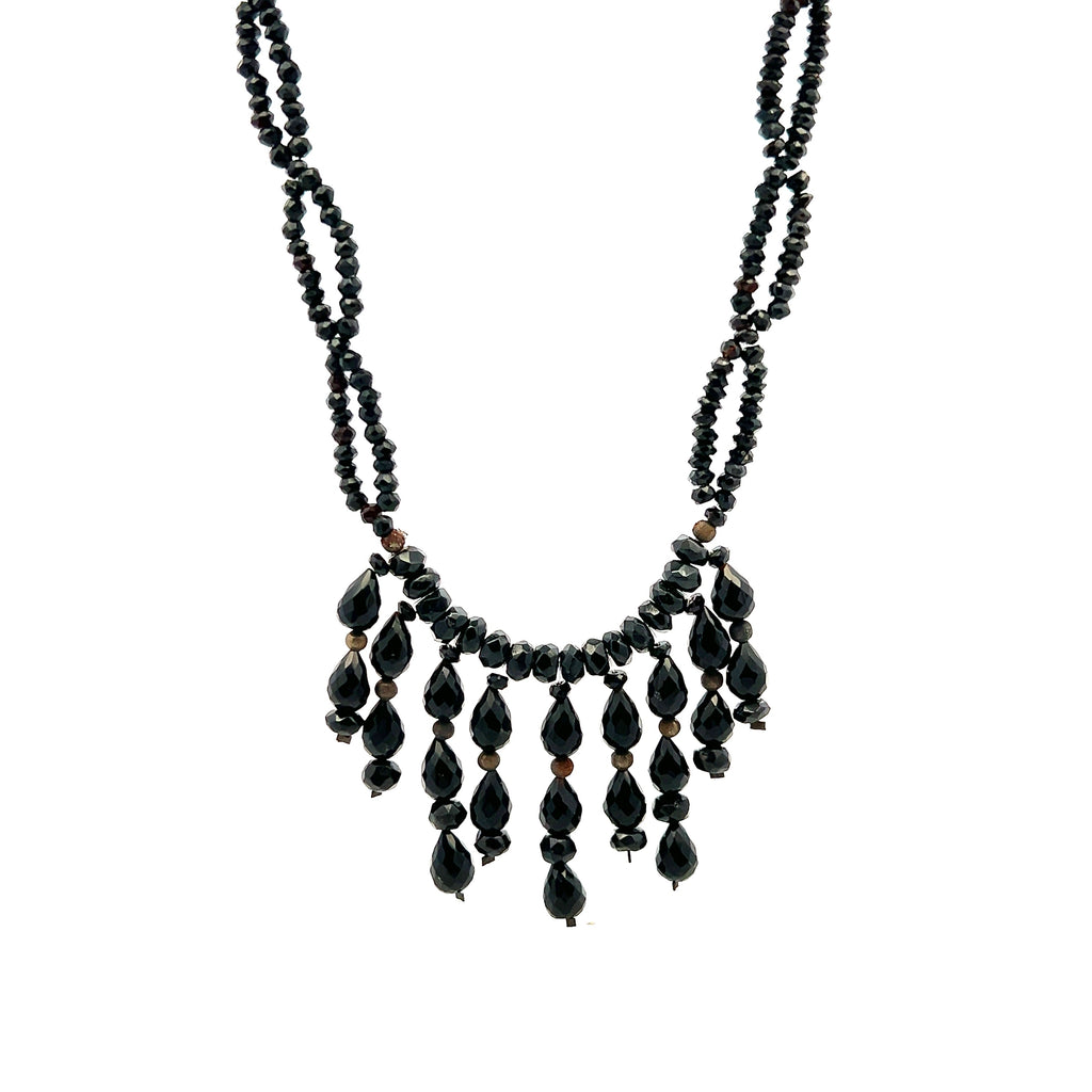 Natural Black Onyx Drop Rondelle Facet Cut Semiprecious Necklace