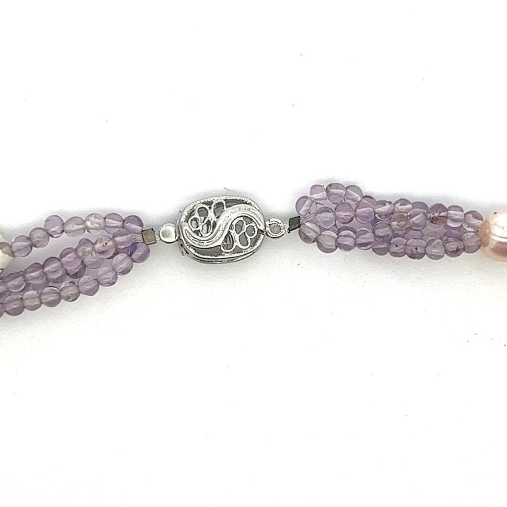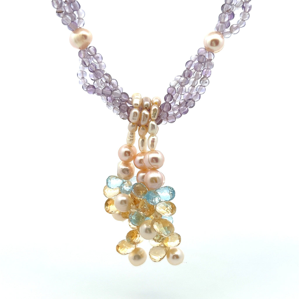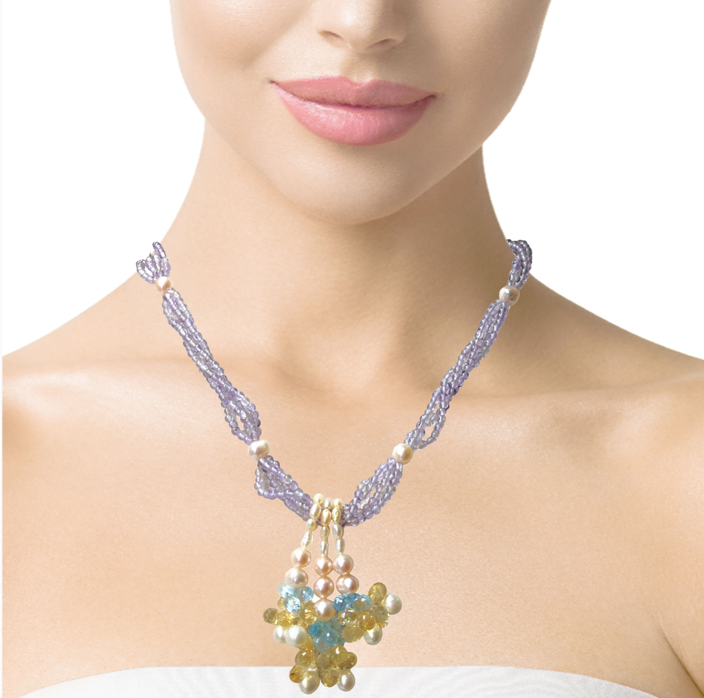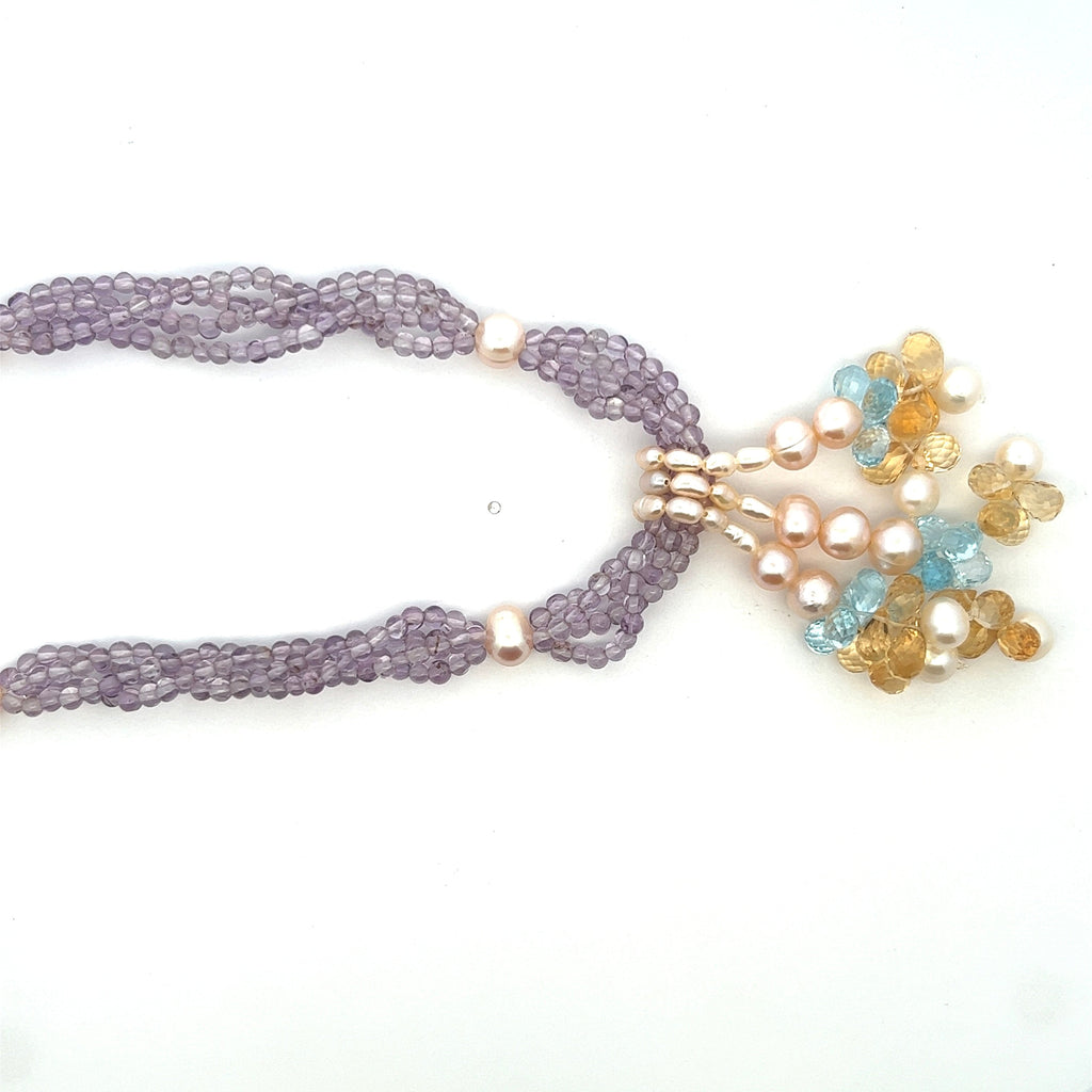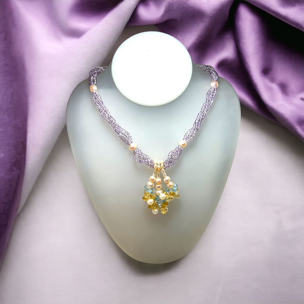 Natural Amethyst Citrine Swiss Blue Topaz Pearl Gemstone Handmade Necklace