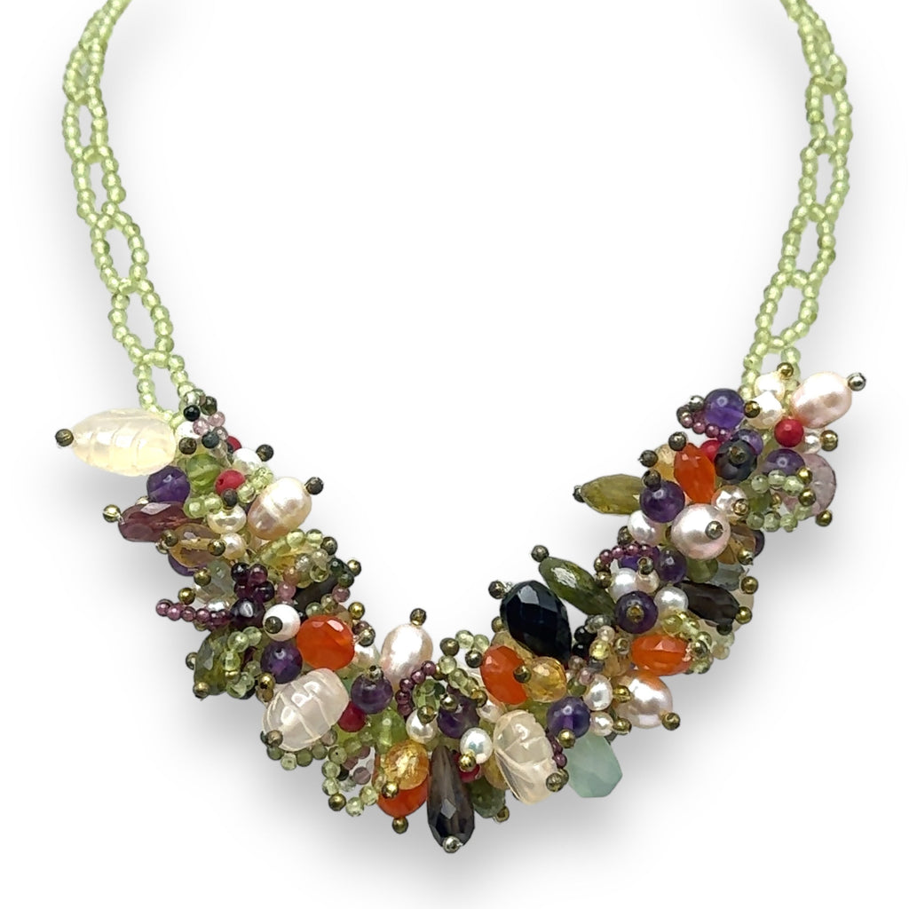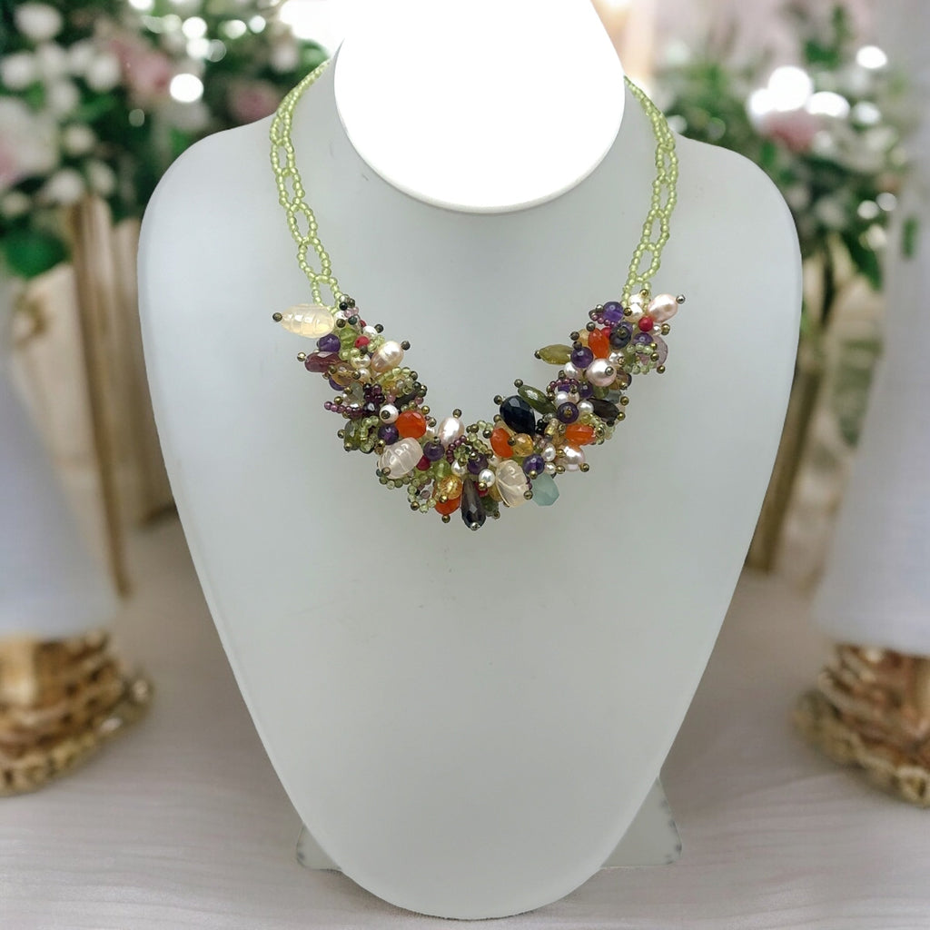 Natural Plain Peridot Ball & Mix Semiprecious Gemstone Necklace