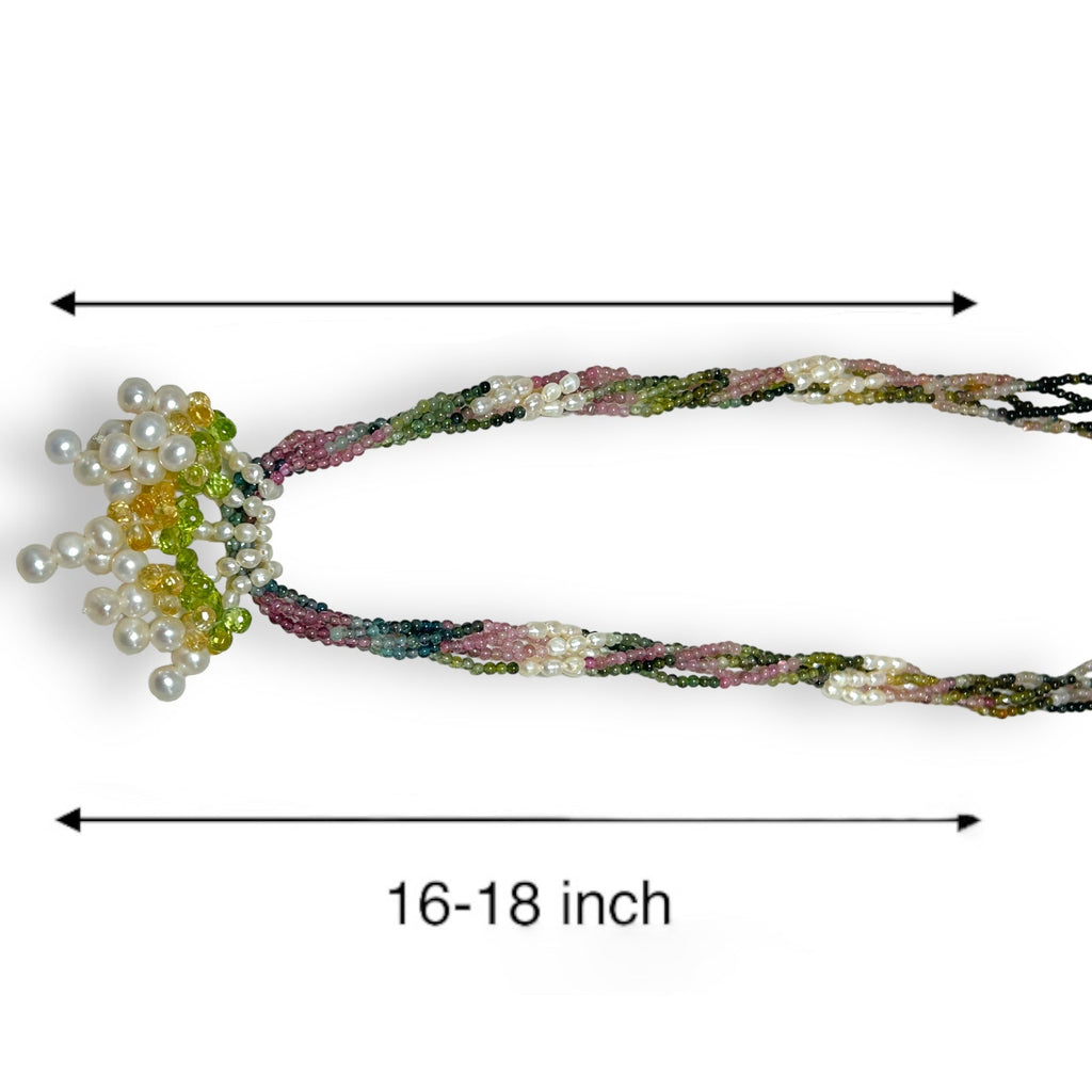 Natural Multi Tourmaline Pearl Citrine Peridot Gemstone Necklace