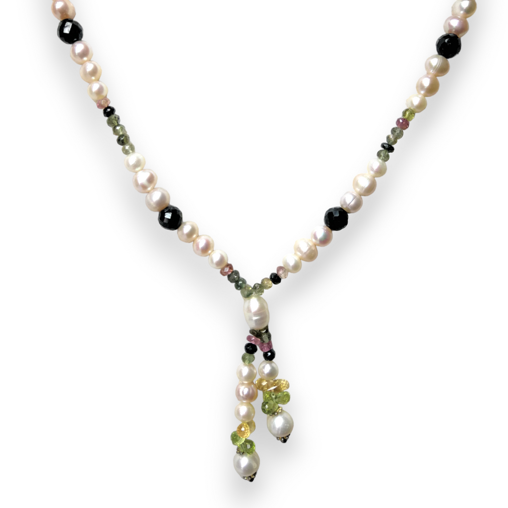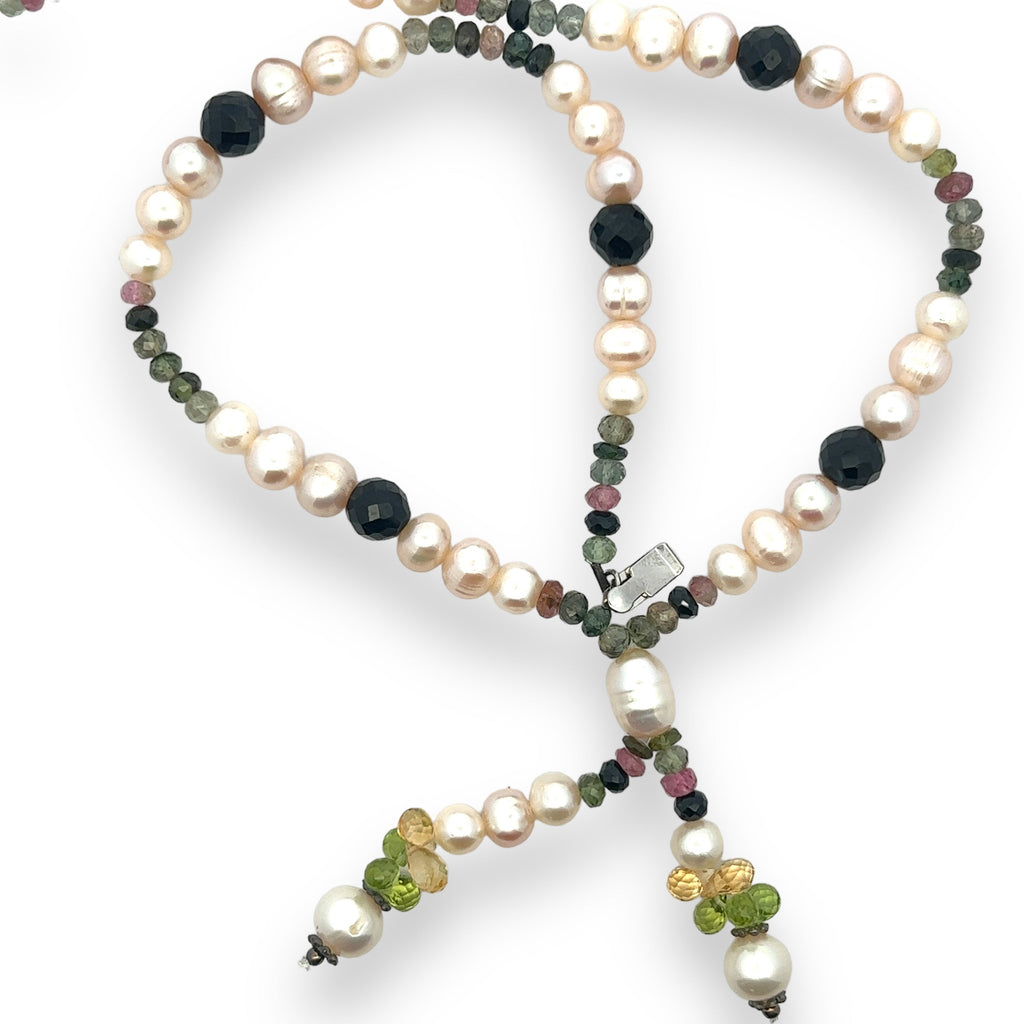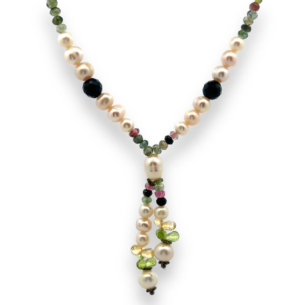 Natural Citrine & Multi Tourmaline Pearl Peridot Gemstone Necklace