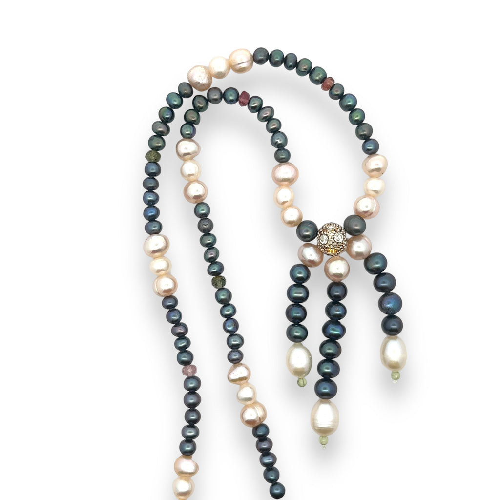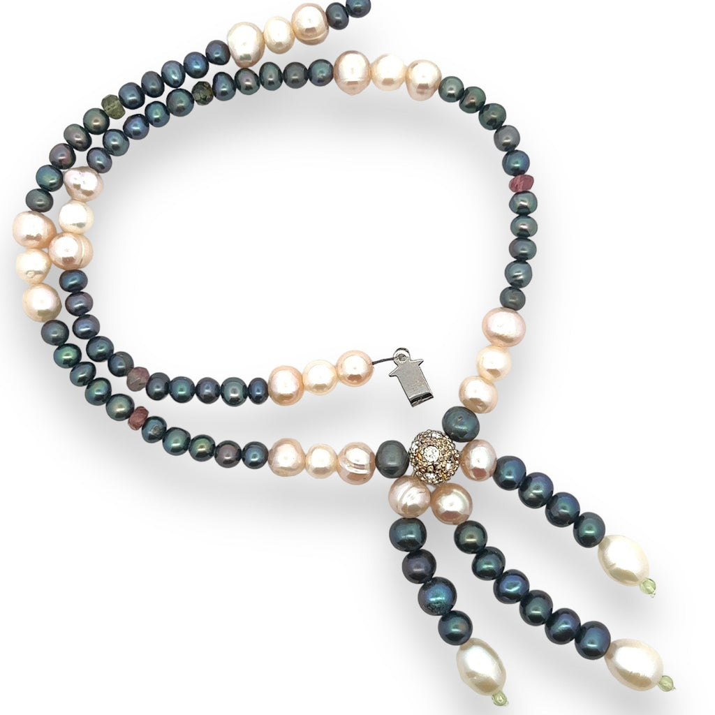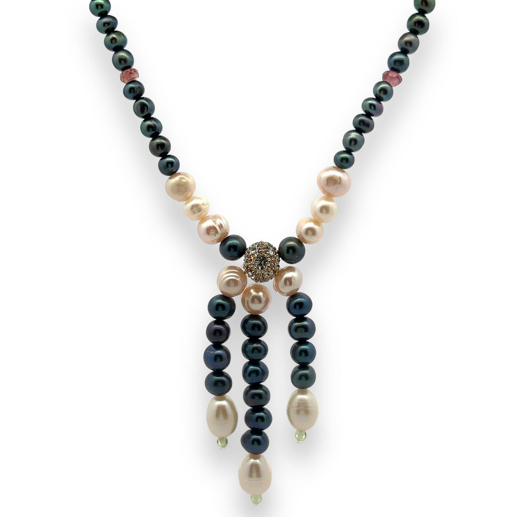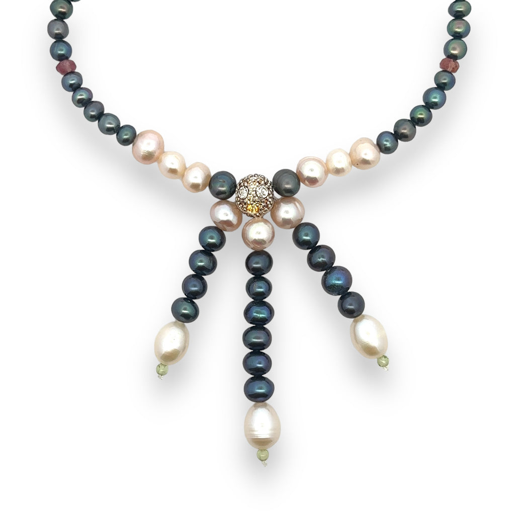 Natural Peridot Multi Tourmaline Pearl Handmade Necklace Jewelry
