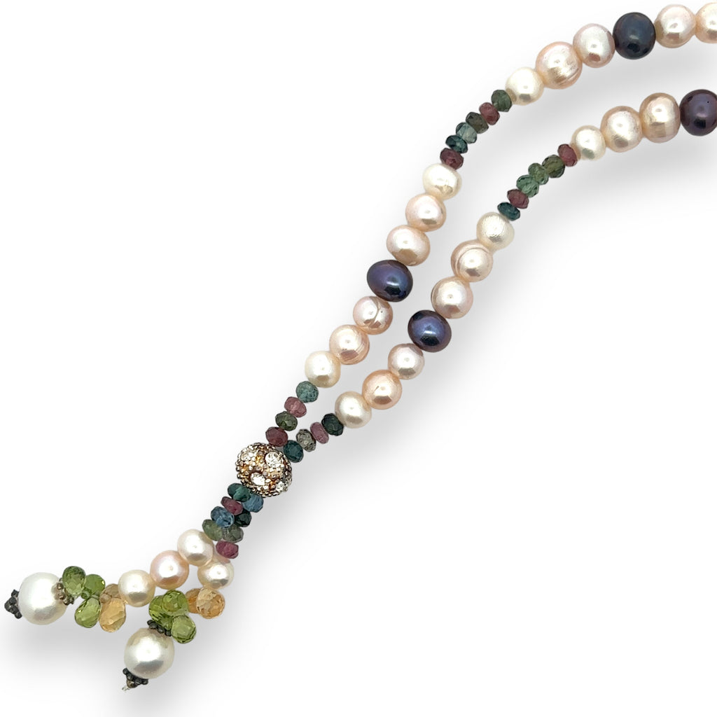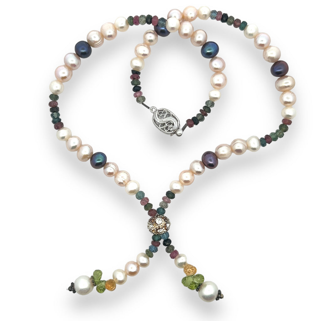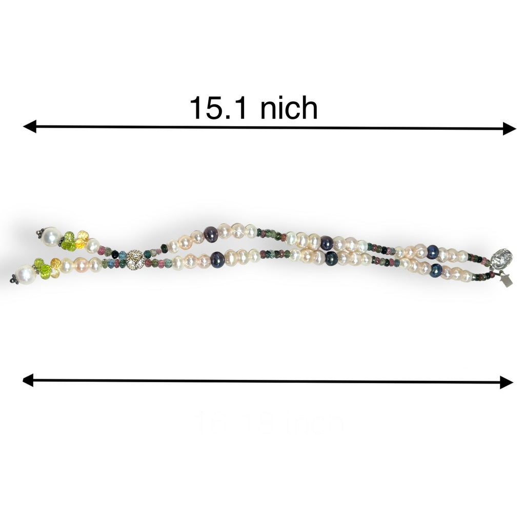 Natural Multi Tourmaline Pearl Peridot Citrine Unique Necklace Jewelry