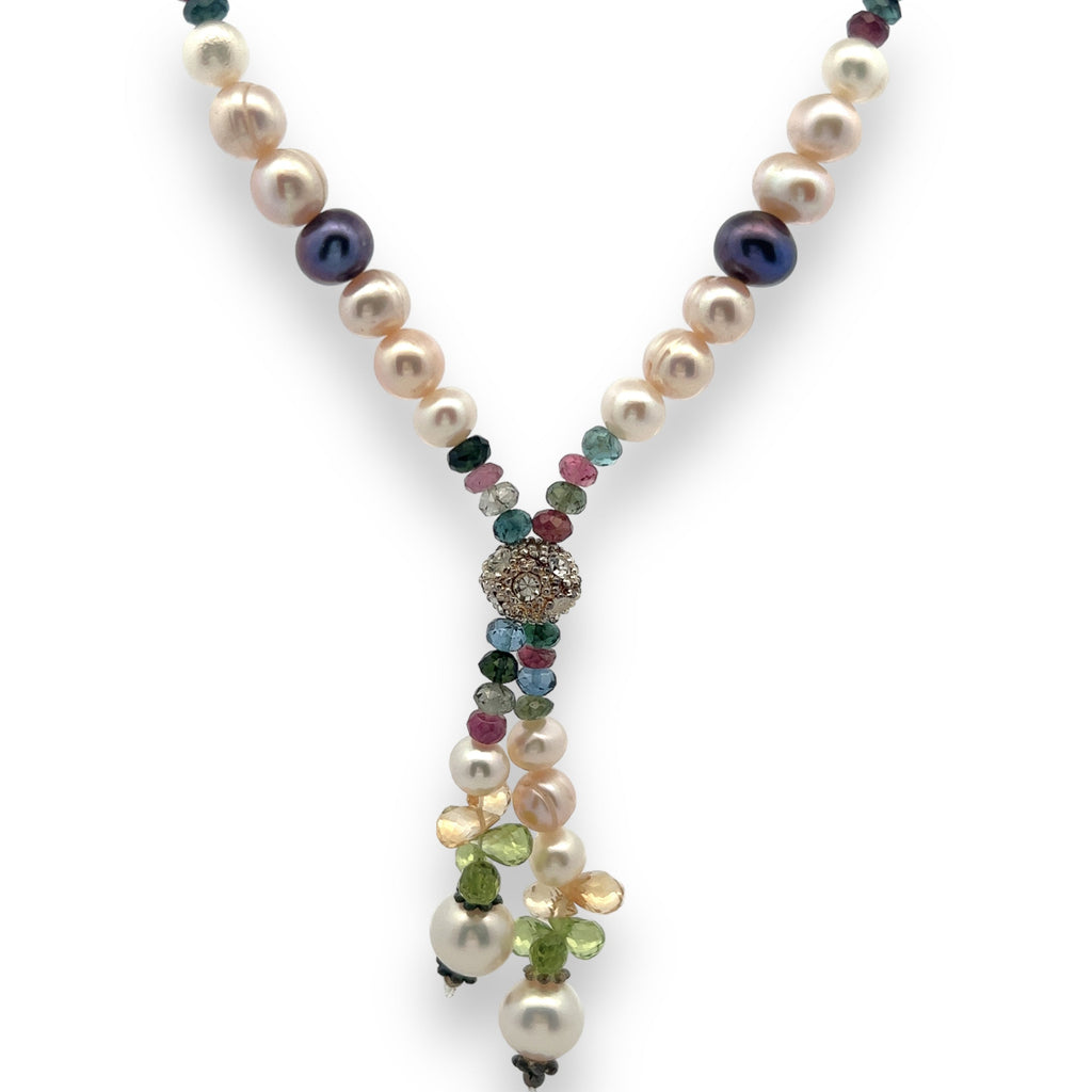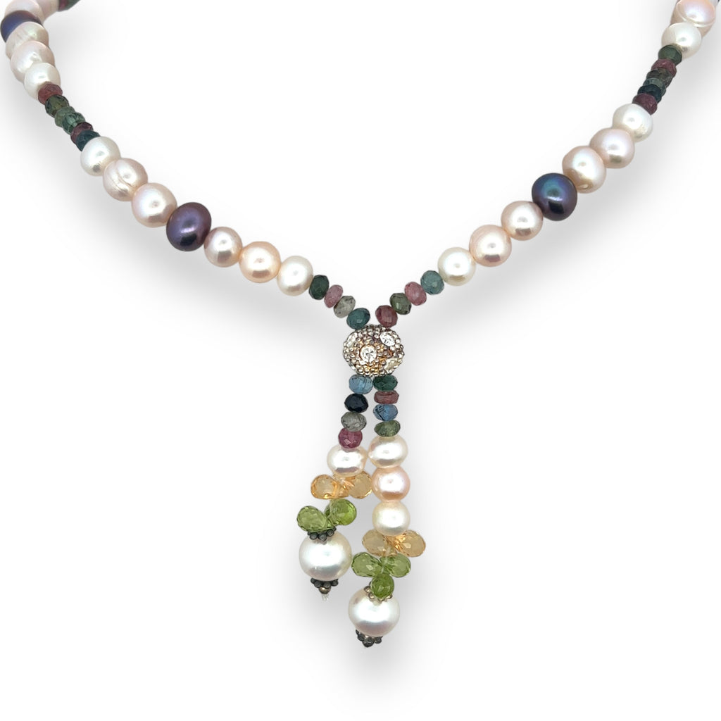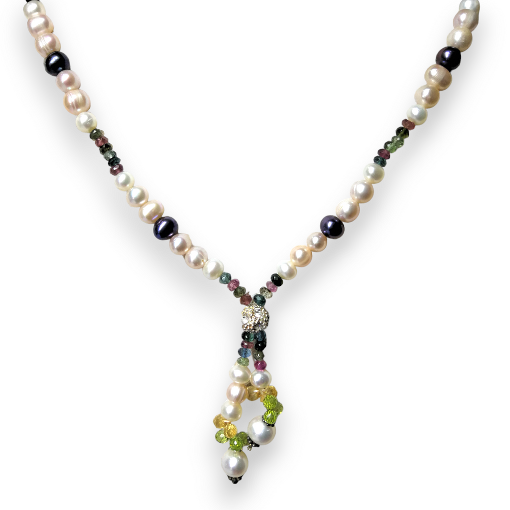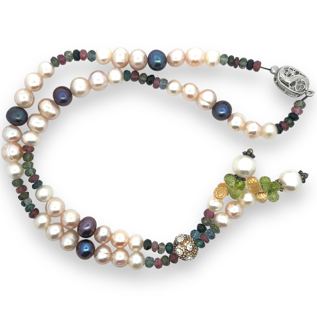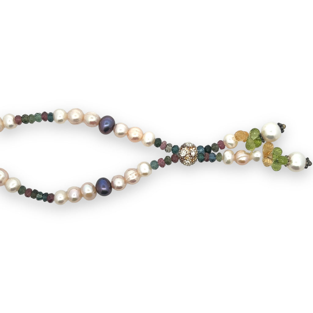 Natural Multi Tourmaline Pearl Citrine Peridot Multi Colored Gemstone Necklace
