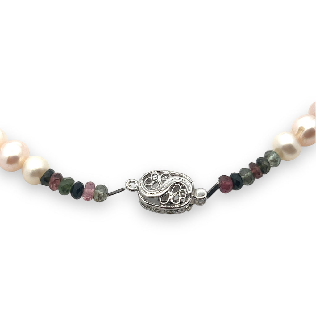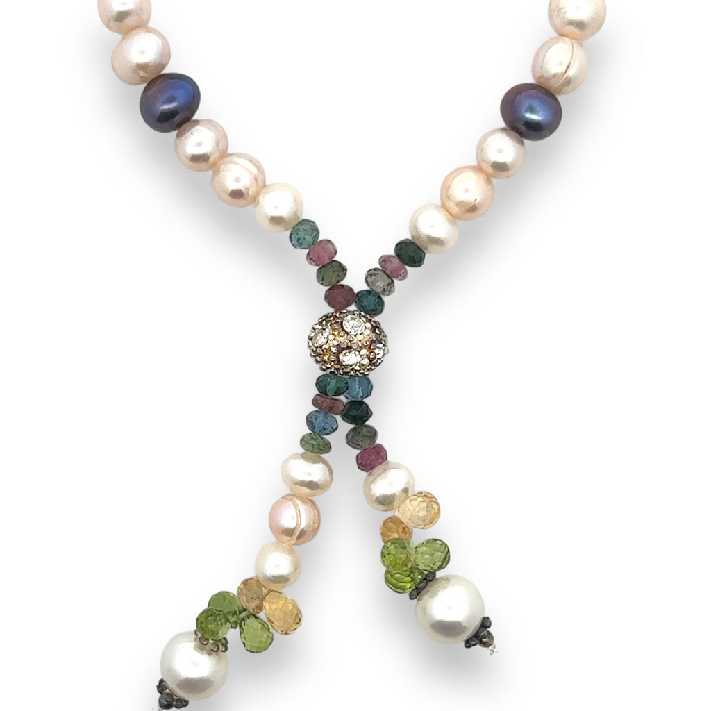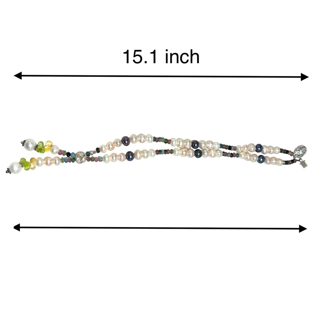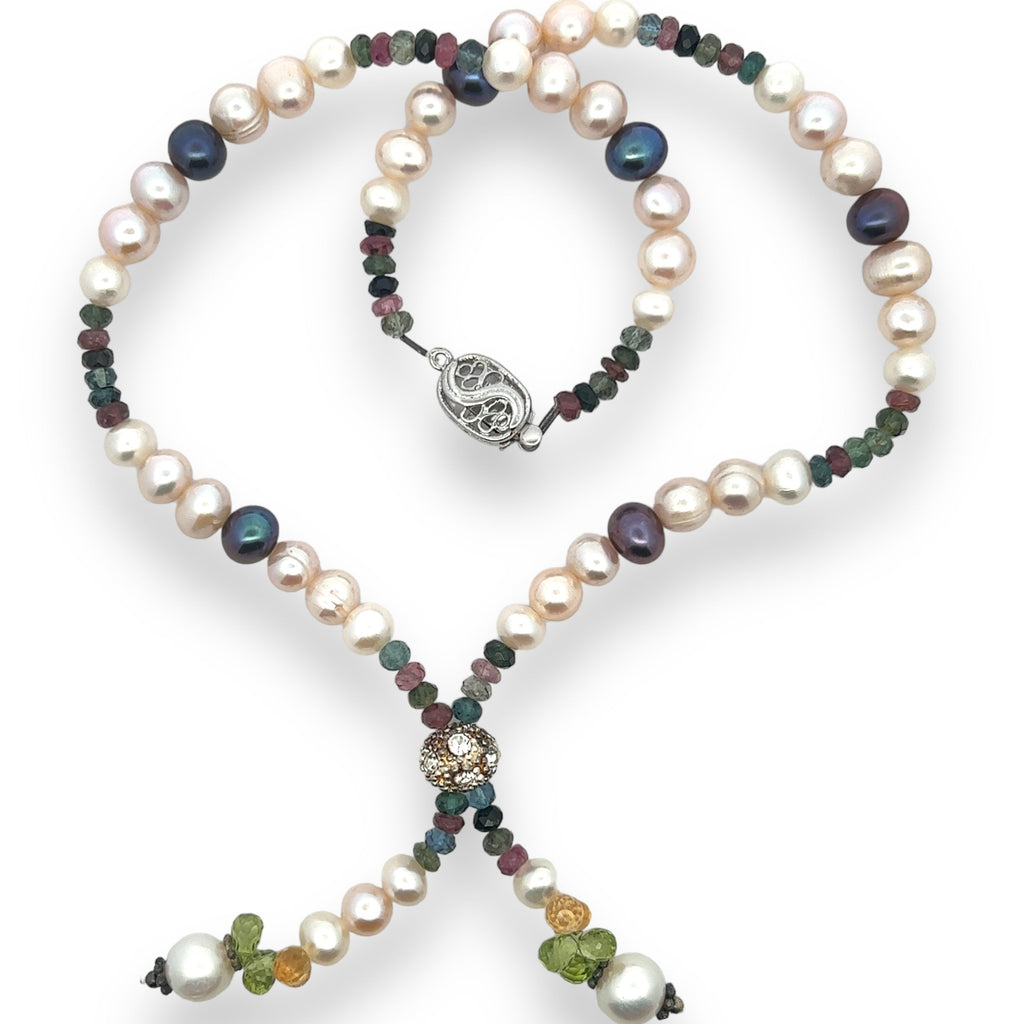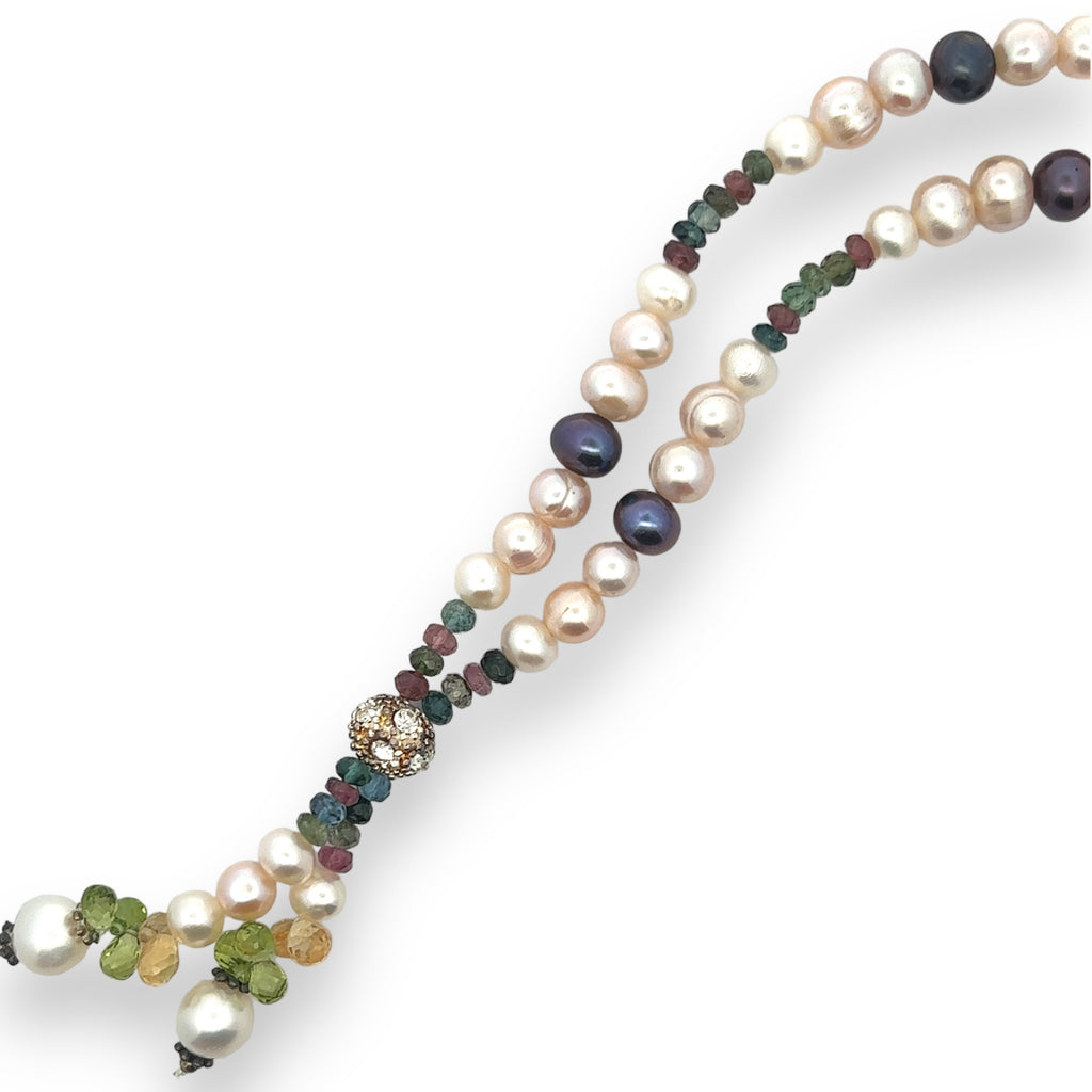 Natural Multi Tourmaline Pearl Citrine Peridot Multi Colored Gemstone Necklace