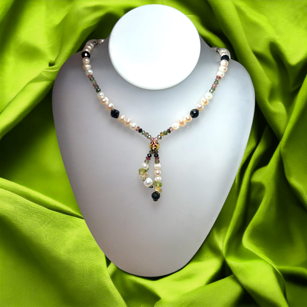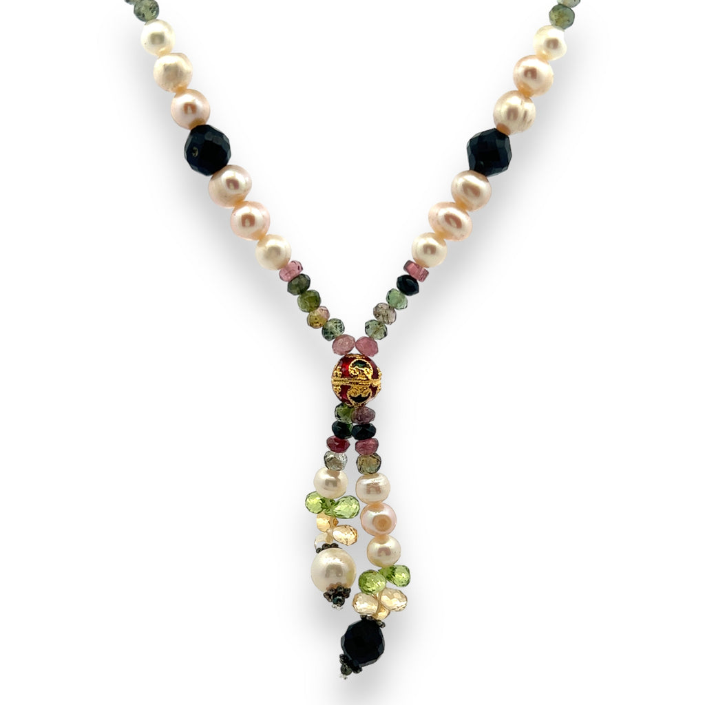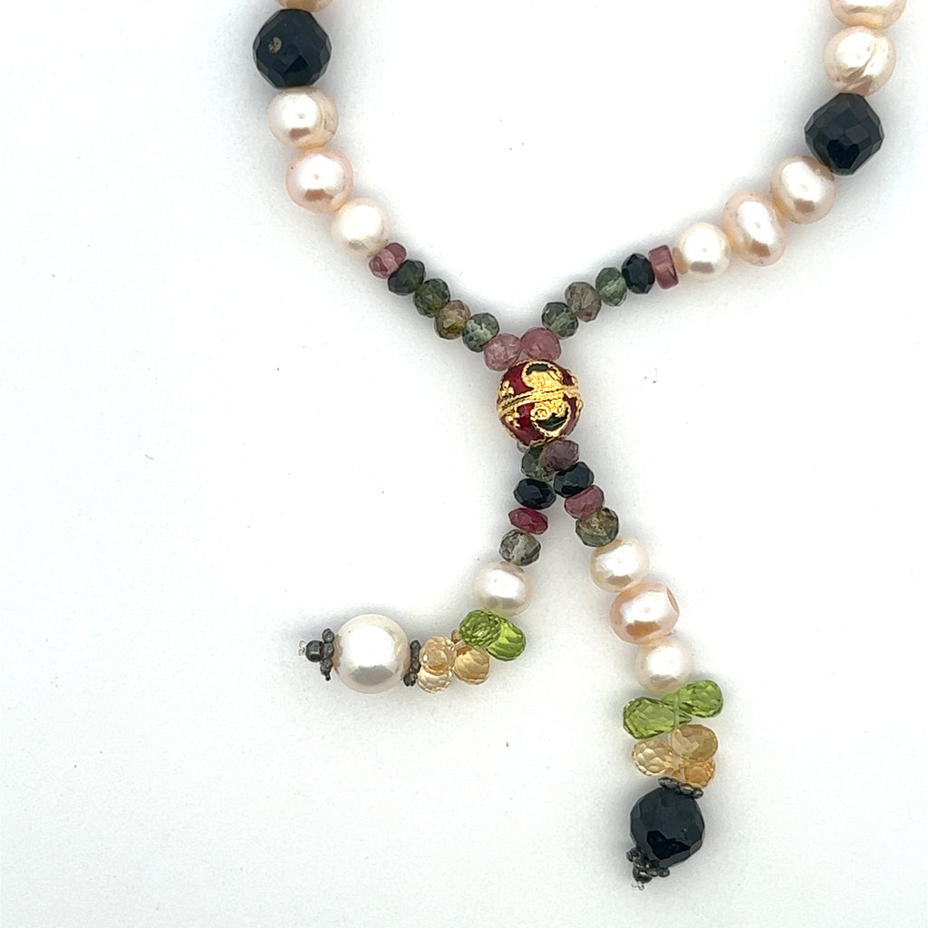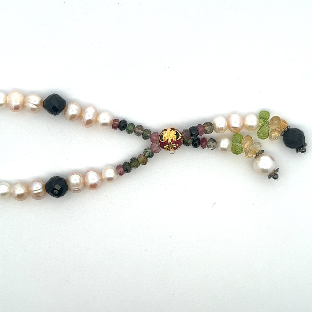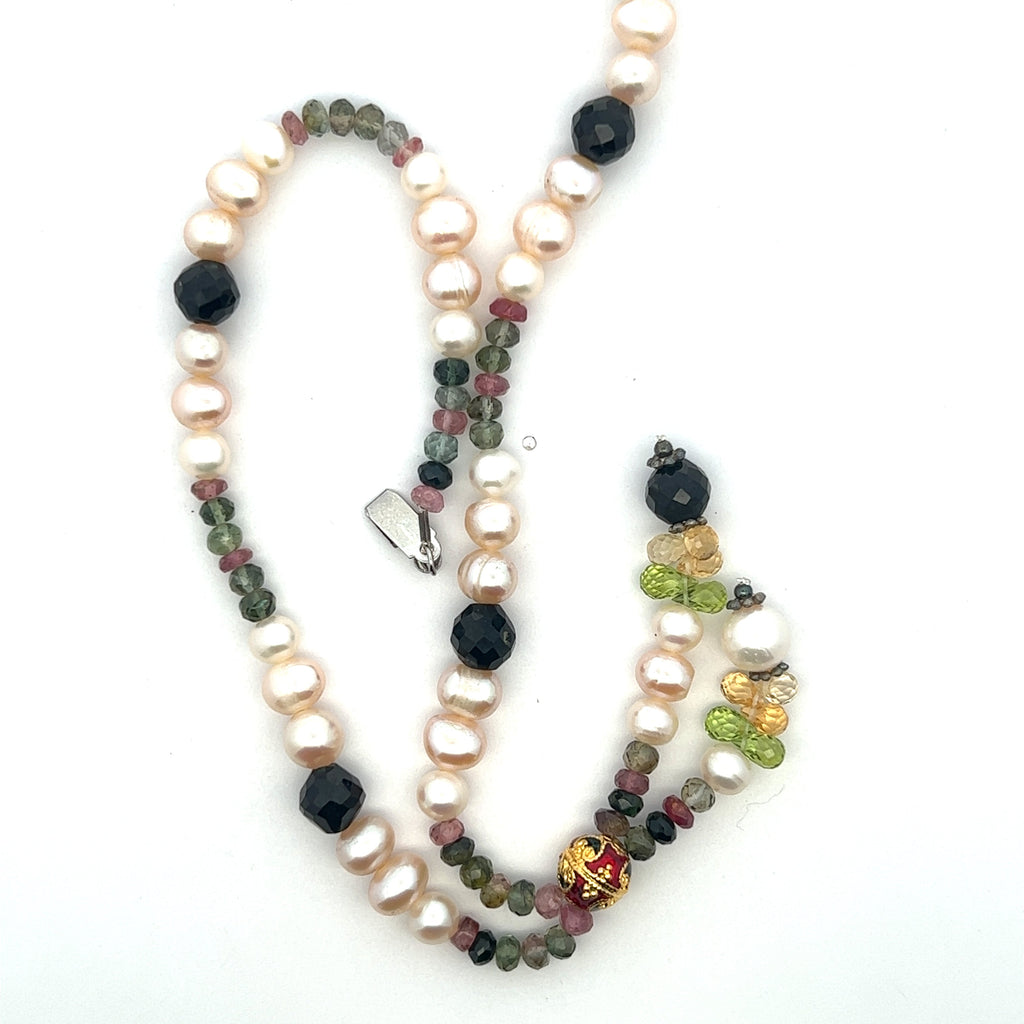 Natural Multi Tourmaline Pearl Citrine Peridot Beads Crafted Necklace
