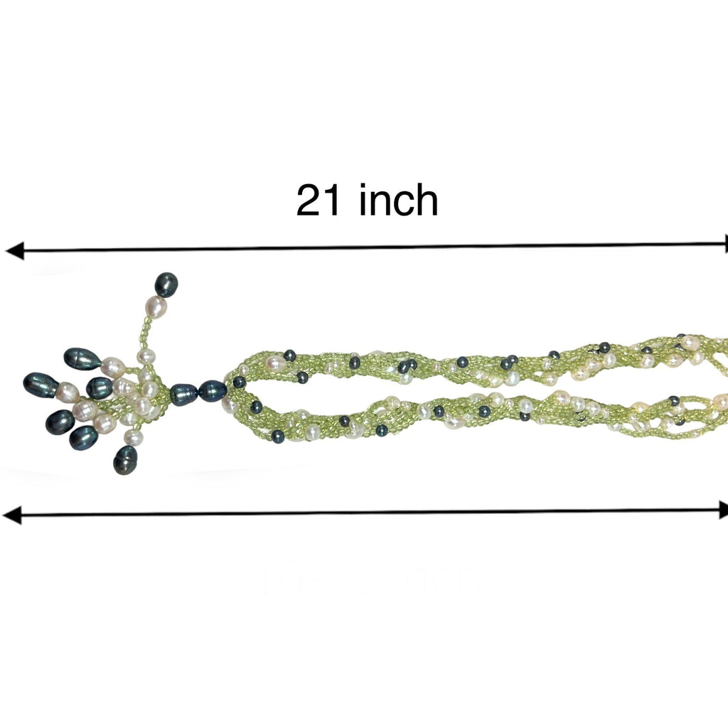 Natural Peridot & Pearl Round Plain Birth Gemstone Necklace