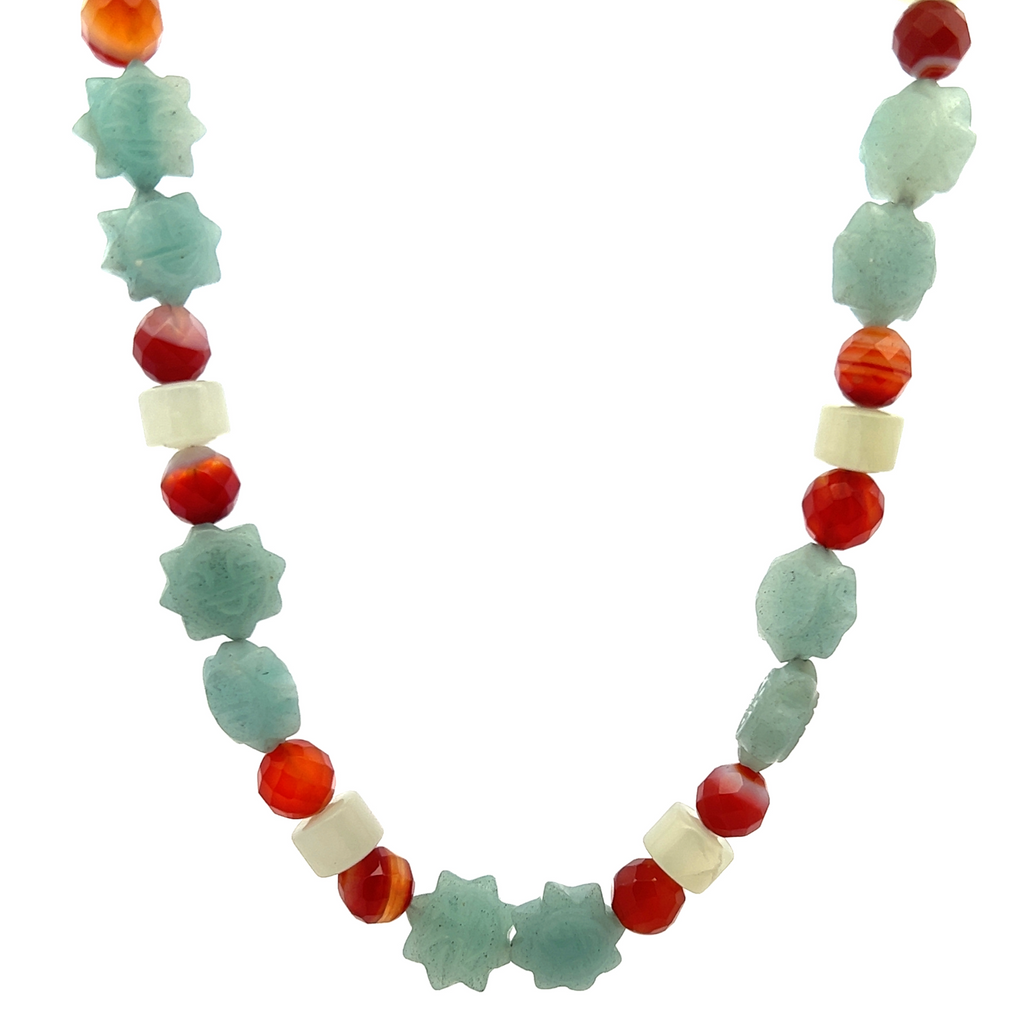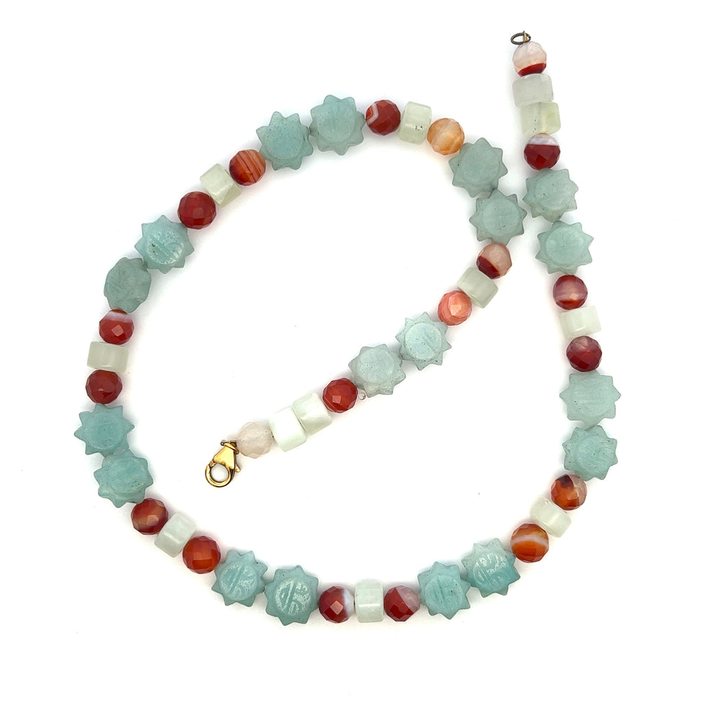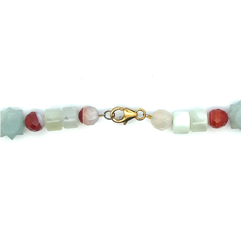 Natural Jade Rondelle Facet Bead & Agate Gemstone Necklace