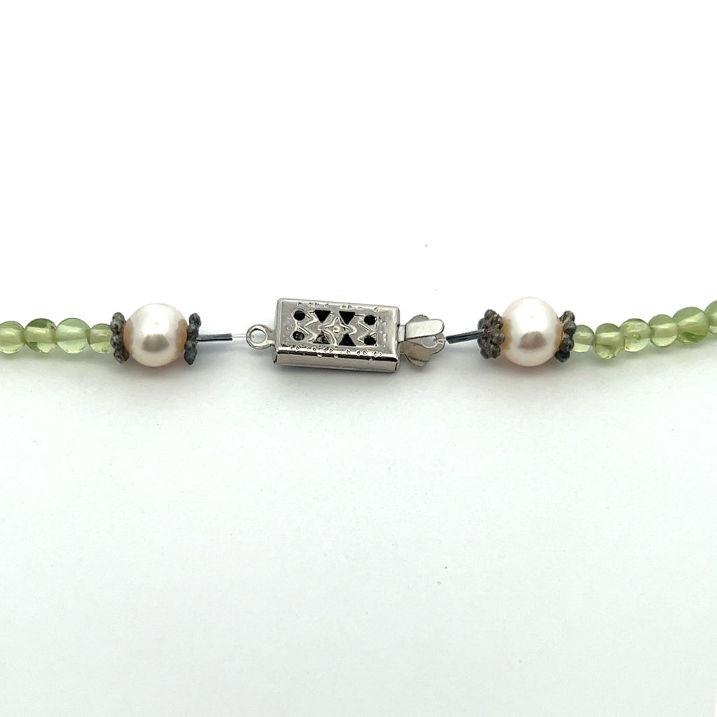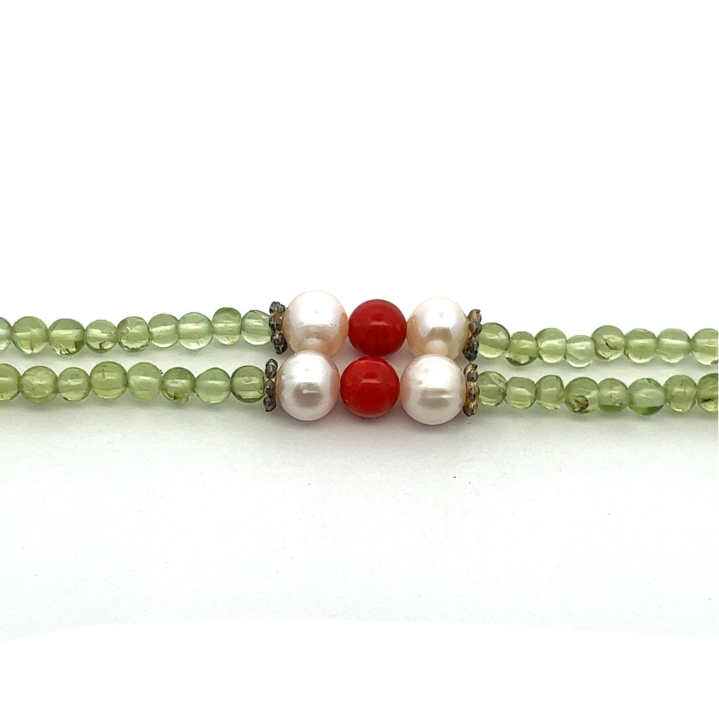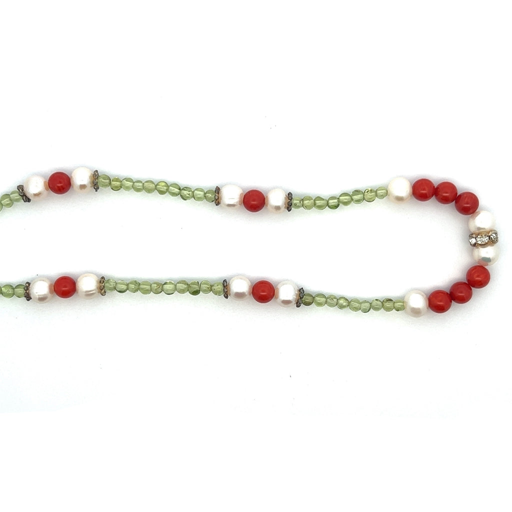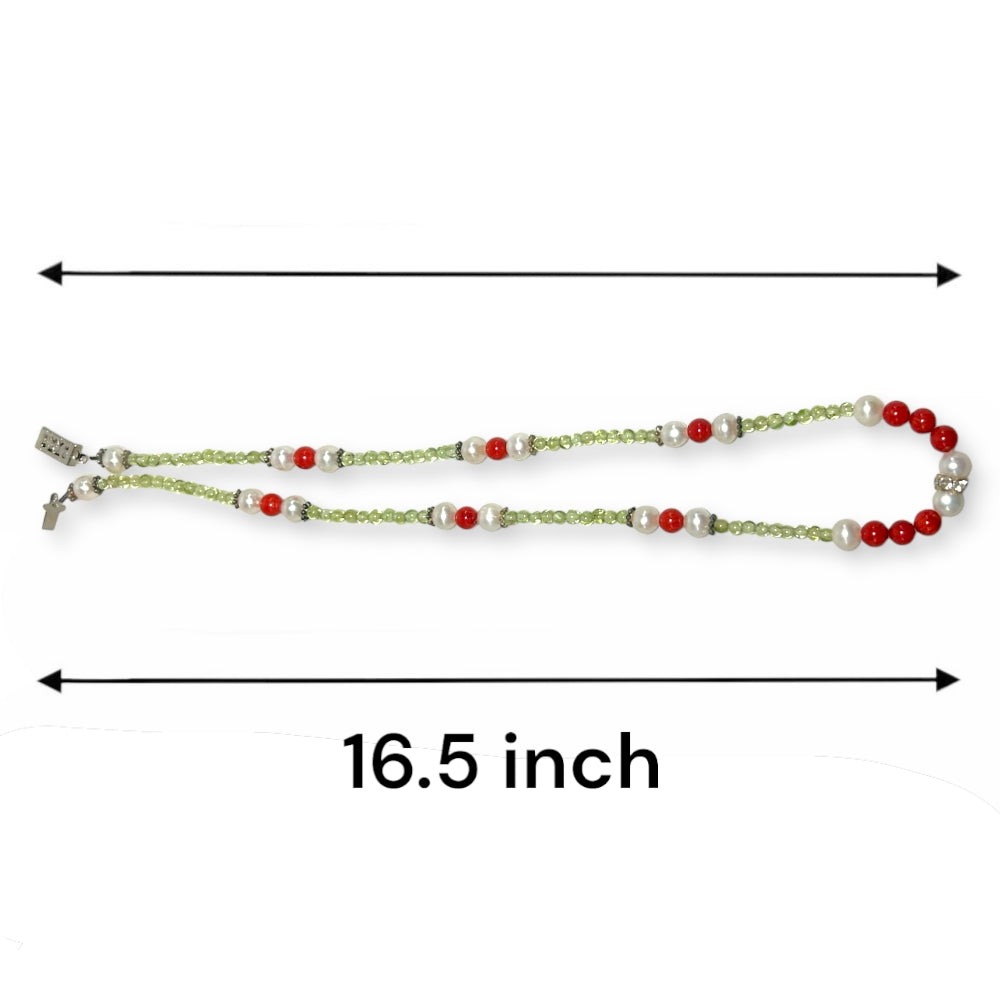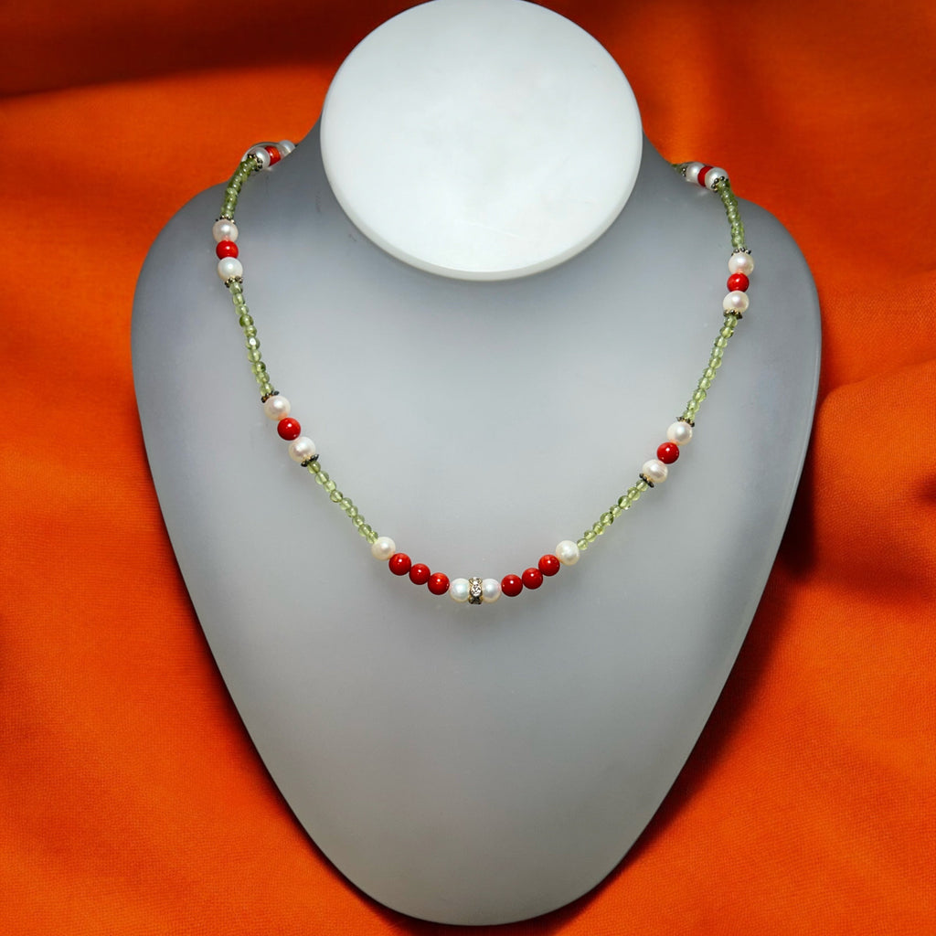 Natural Peridot Coral Ball with Pearl Ball Semi Precious Gemstone Necklace