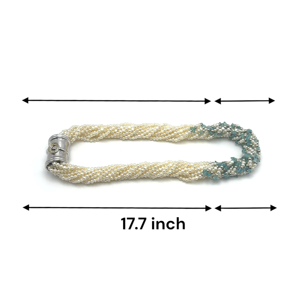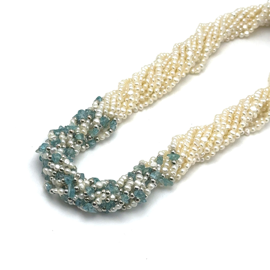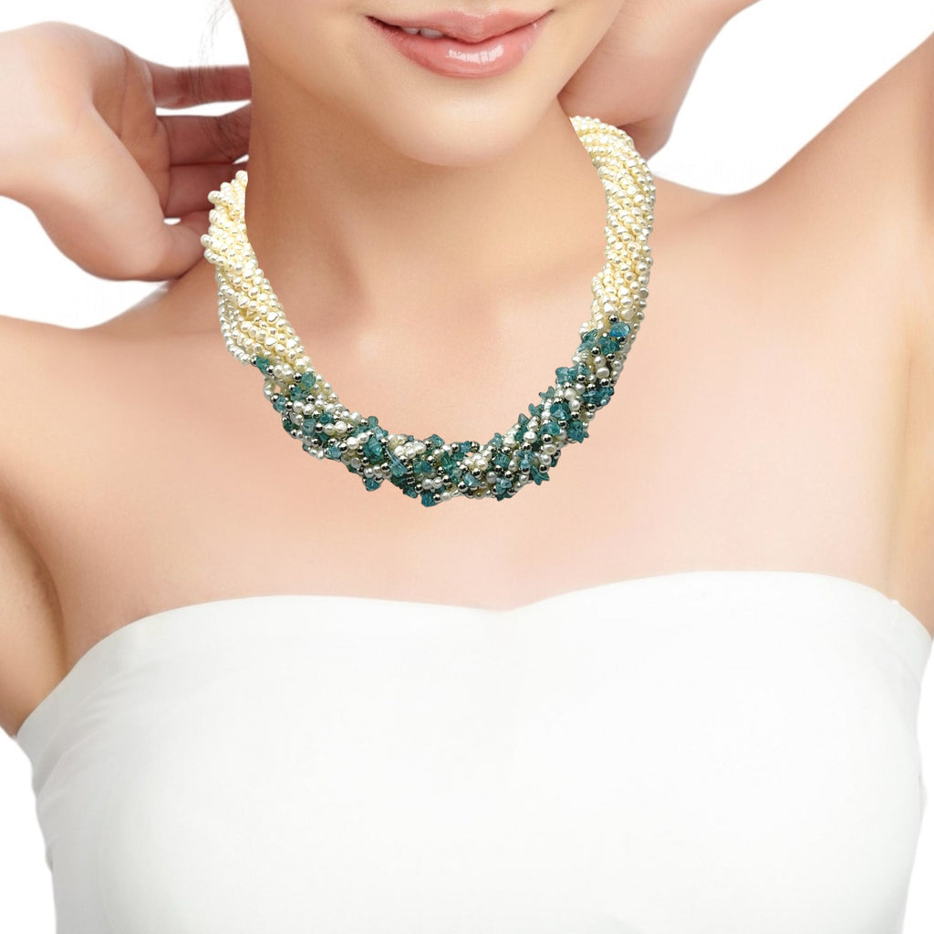 Pearl Classic Twisted Necklace with Plain Chips Blue Topaz Gemstone