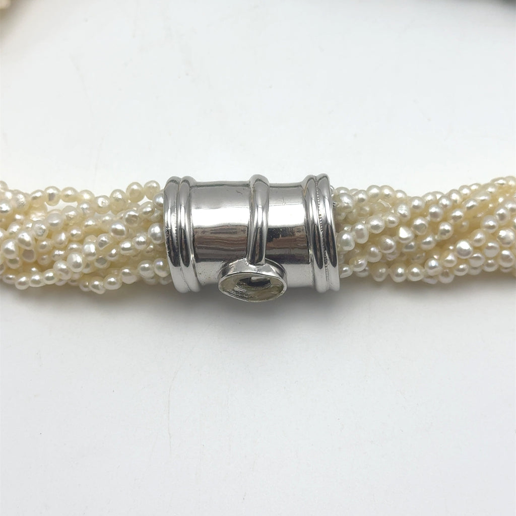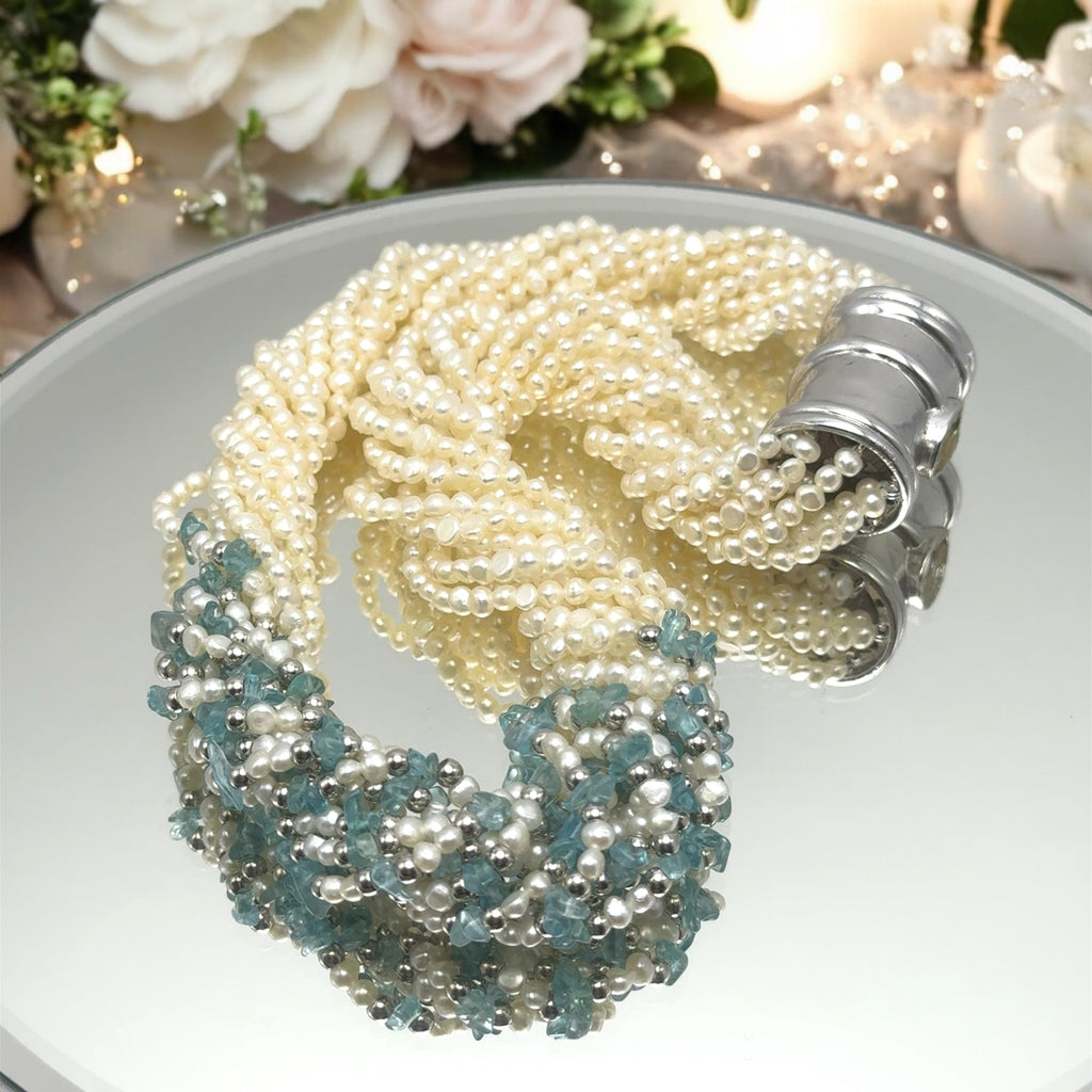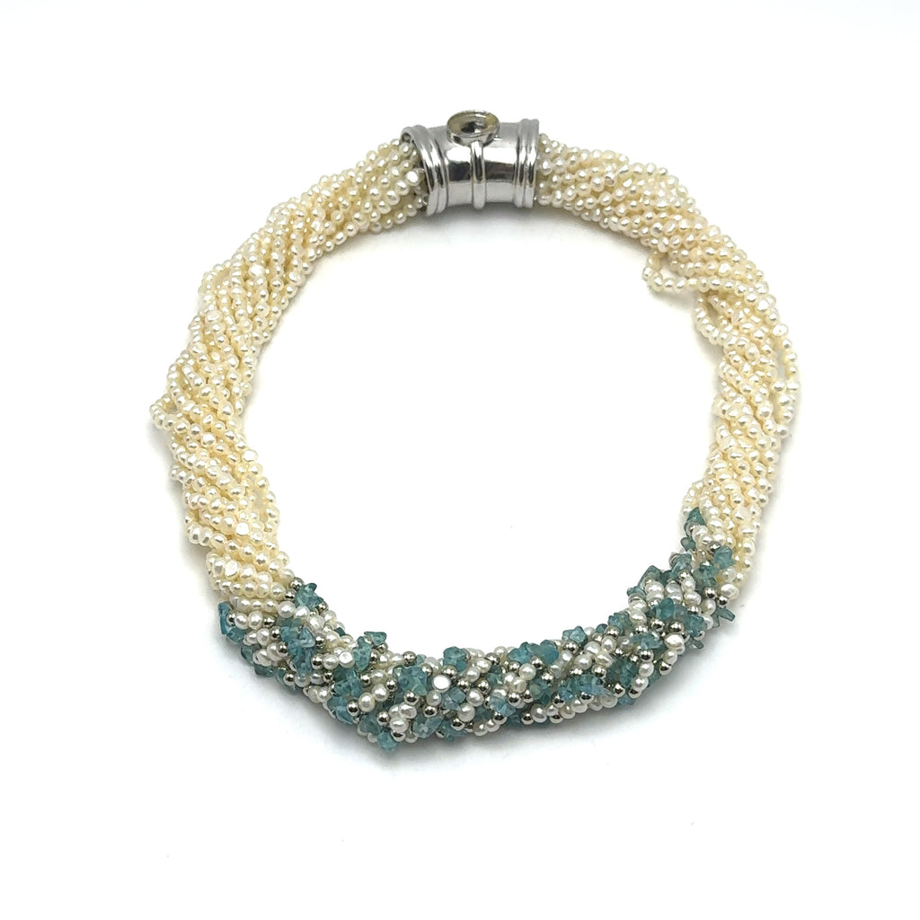 Pearl Classic Twisted Necklace with Plain Chips Blue Topaz Gemstone