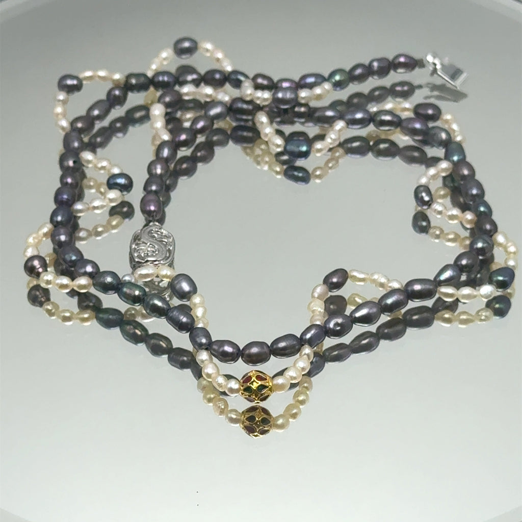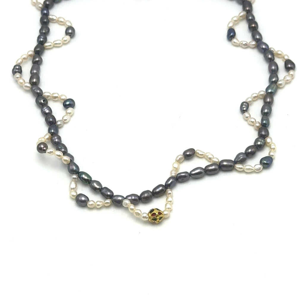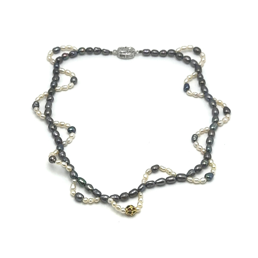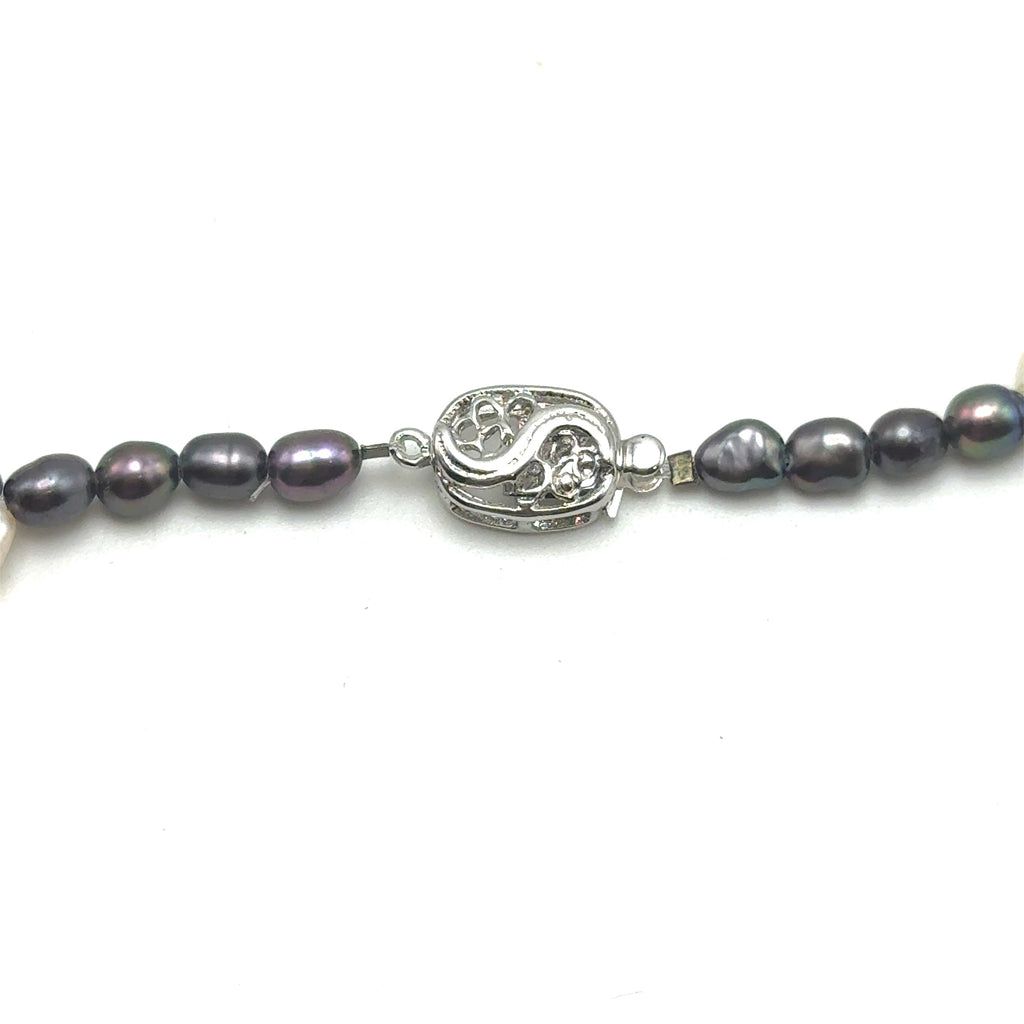 Pearl Elegant Dark Grey and White Twisted Necklace