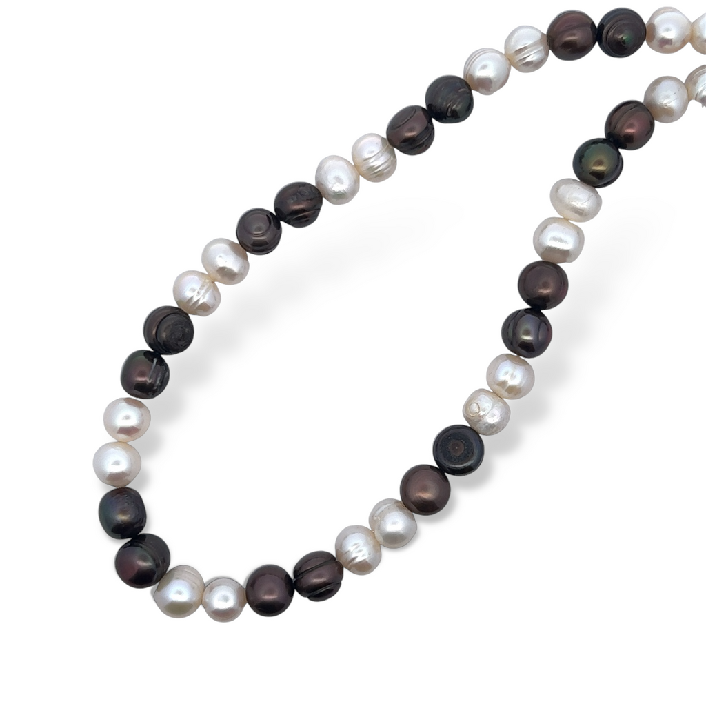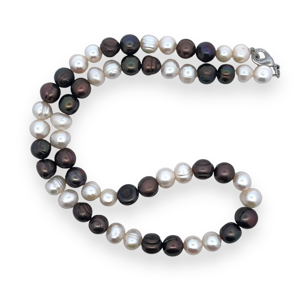 Pearl Two-Tone Plain Ringed Elegant Necklace
