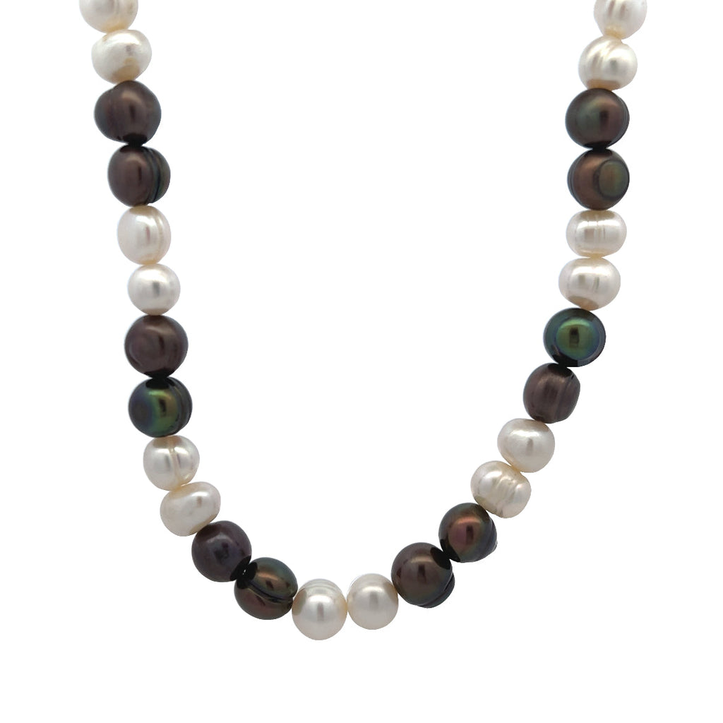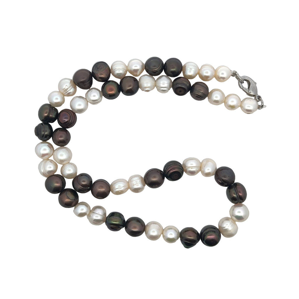 Pearl Two-Tone Plain Ringed June Necklace