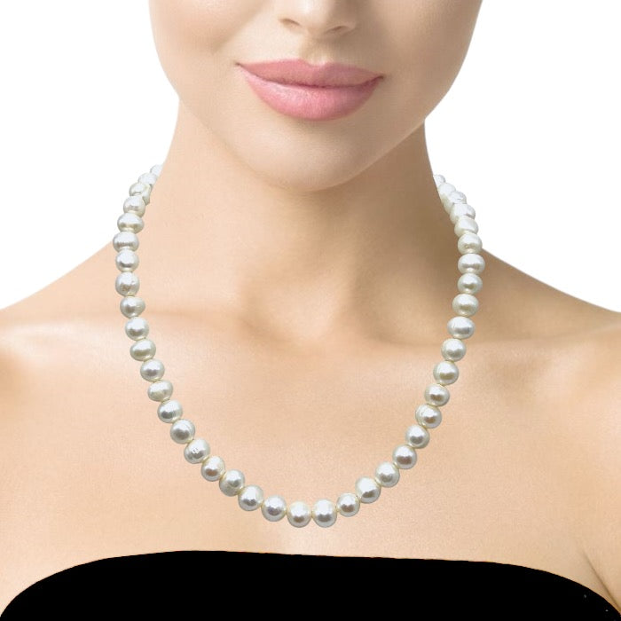 Pearl White Ringed Plain June Birthstone Chic Necklace