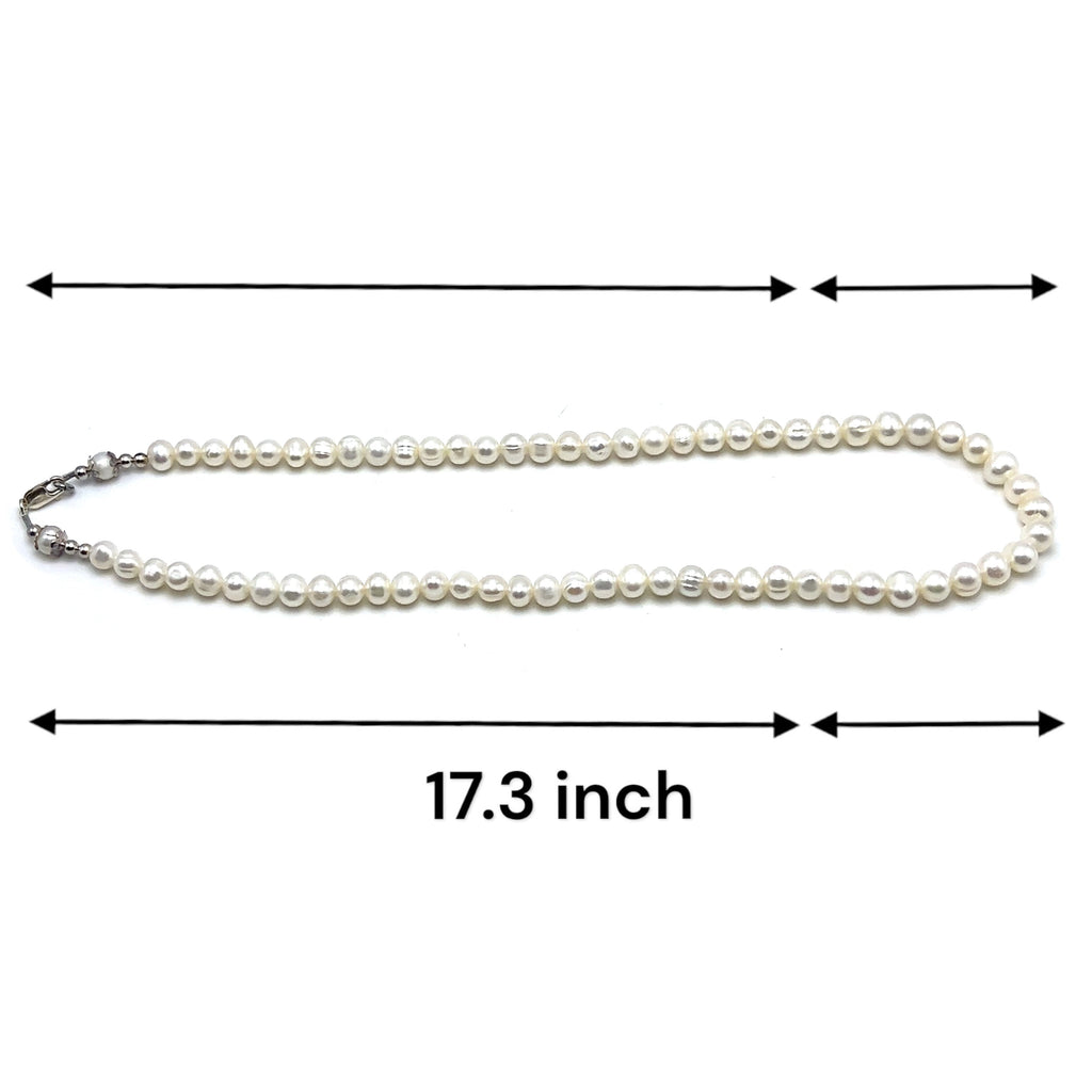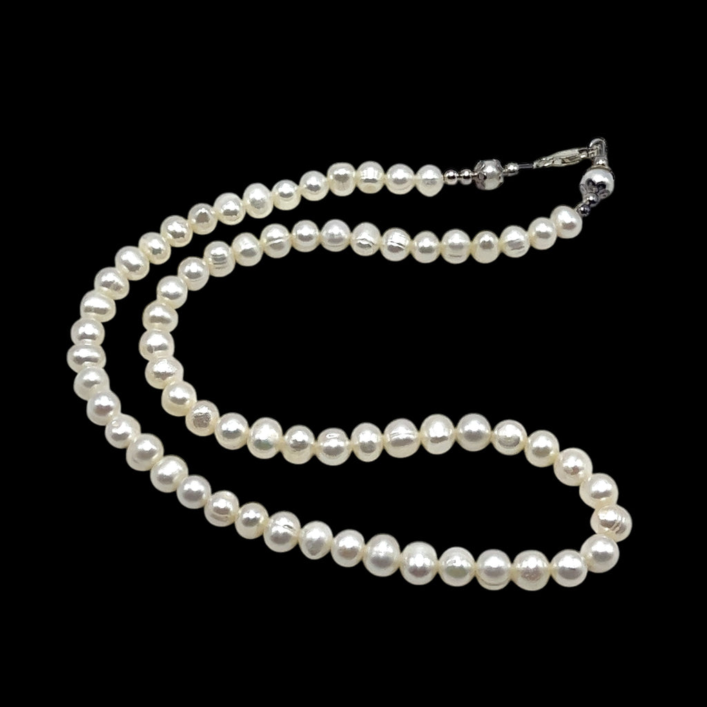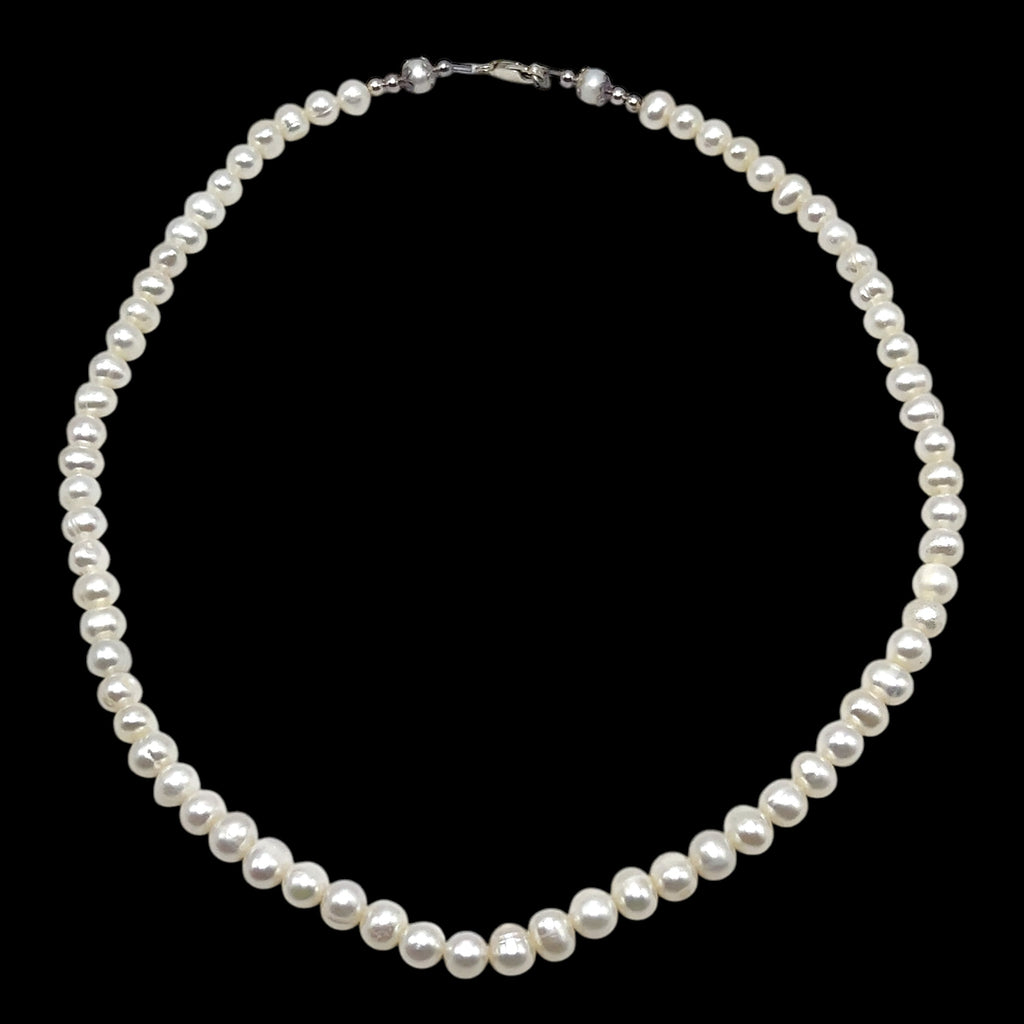 Pearl White Ringed Plain June Birthstone Necklace